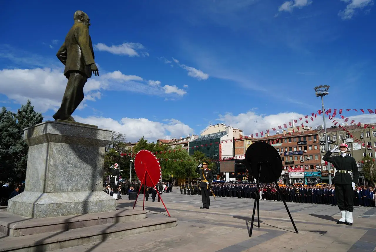 Kırıkkale'de Cumhuriyet'in 102. yıl dönümü coşkuyla kutlandı. Valilik tarafından düzenlenen törende protokol üyeleri Atatürk büstüne çelenk bıraktı.