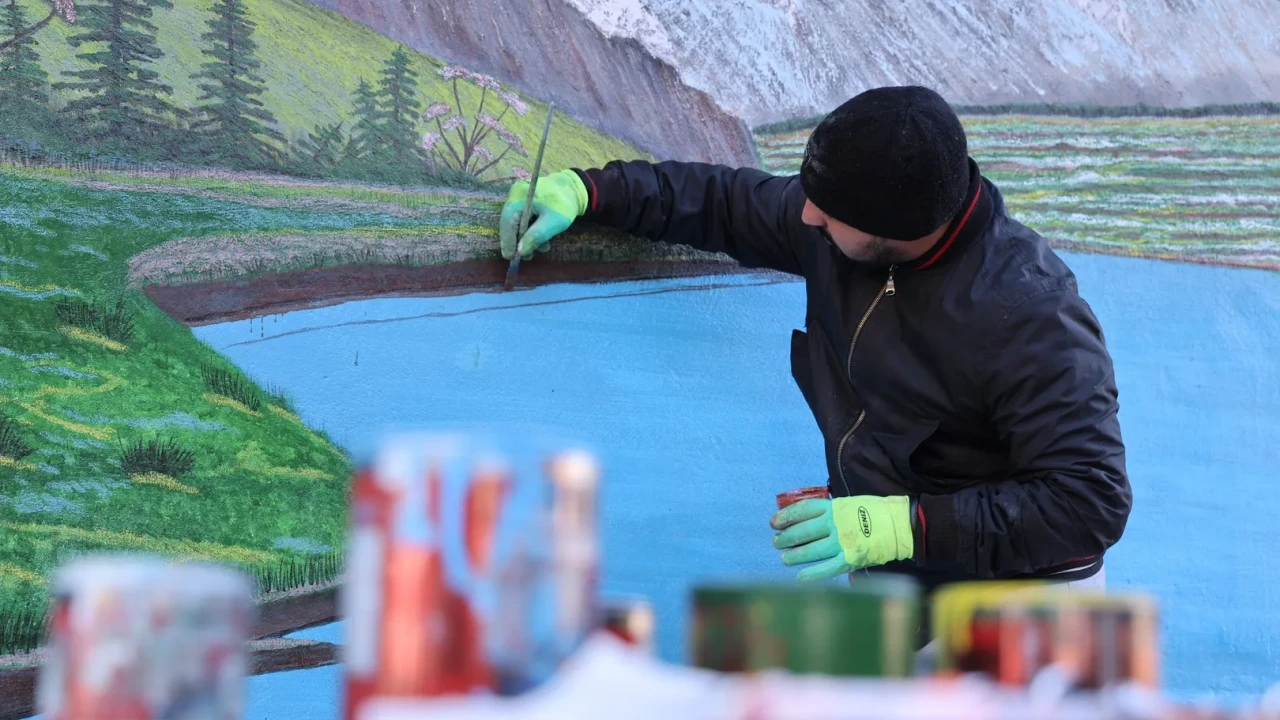 Çalıştığı iş yerinin duvarına yaptığı doğa resmi, çevredekilerin beğenisini topladı. İdris Tatar, bu çalışmanın kötü görüntüyü kapattığını ve şaşırtıcı derecede güzel olduğunu söylüyor.