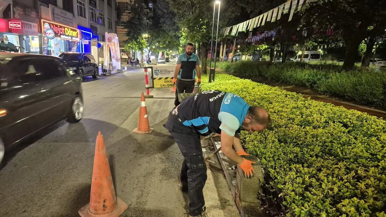 Kocaeli Büyükşehir Belediyesi, kent genelinde ulaşım güvenliğini artırmak için yol ve kaldırım onarımlarını sürdürüyor.