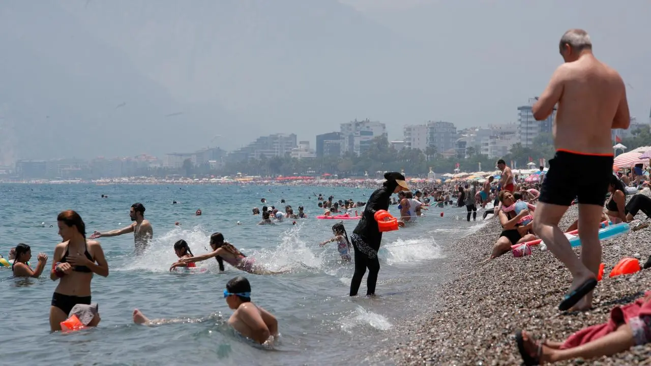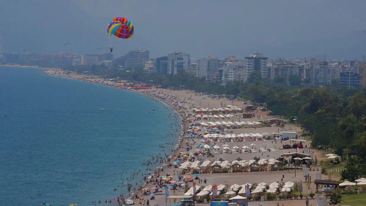 Antalya'da bayramın son gününde hava sıcaklığının 32 dereceye ulaşmasıyla vatandaşlar sahillere akın etti.