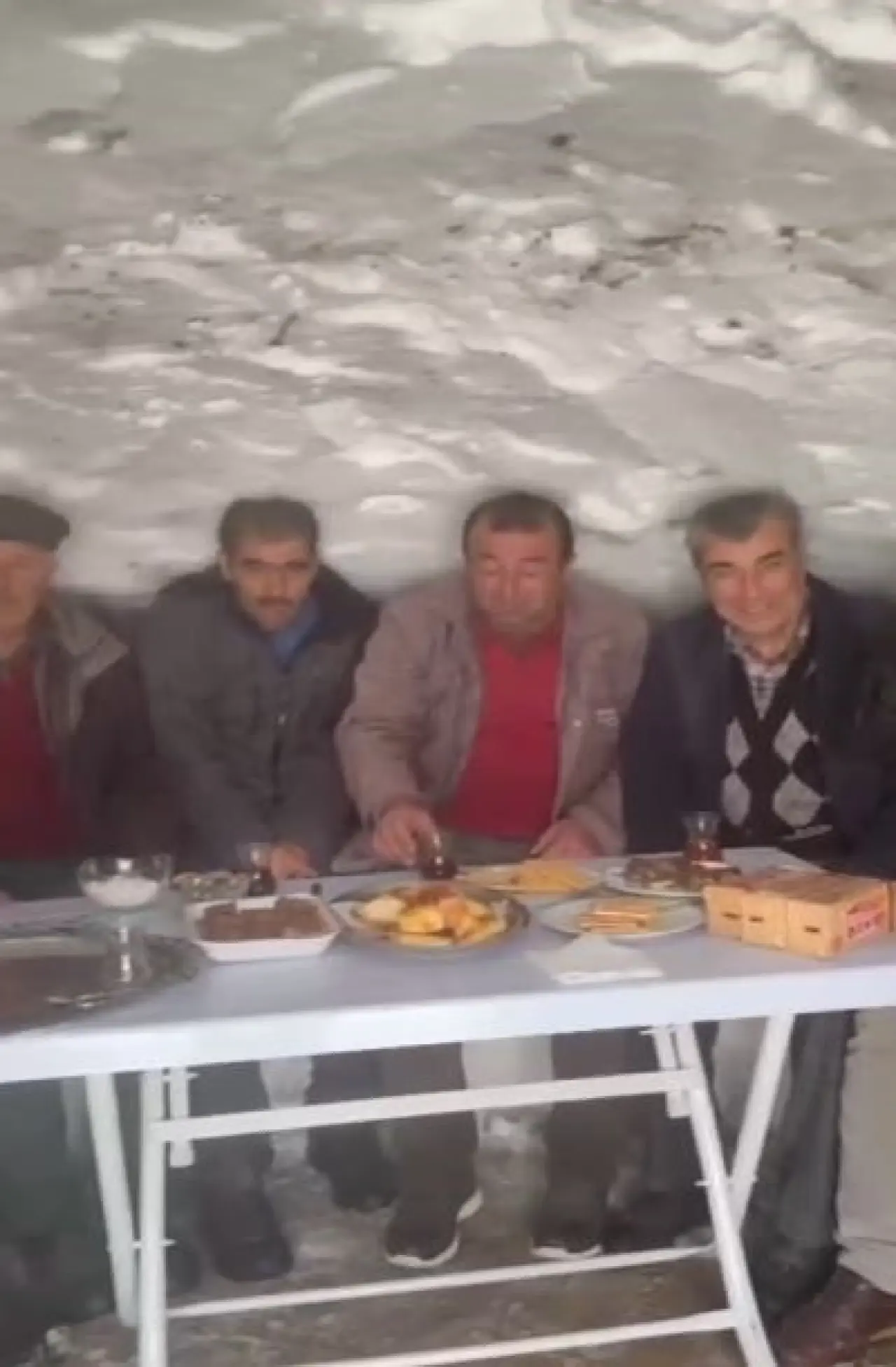 Sivas’ın Hafik ilçesine bağlı Yeniköy’de köylüler, yoğun kar yağışını fırsata çevirerek kardan çay ocağı yaptı. Bu etkinlikle birlik ve beraberlik mesajı verildi.