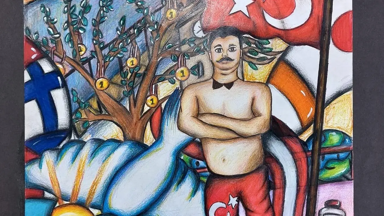 Balıkesir'de düzenlenen Kurtdereli Mehmet Pehlivan resim yarışmasında, öğrenciler ata sporunun ruhunu tuvallere yansıttı.