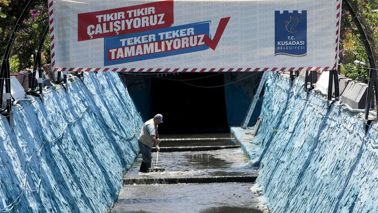 Kuşadası Belediyesi, Damlacık Deresi'nde kapsamlı temizlik çalışmalarını sürdürerek kent hijyenine katkı sağlıyor.