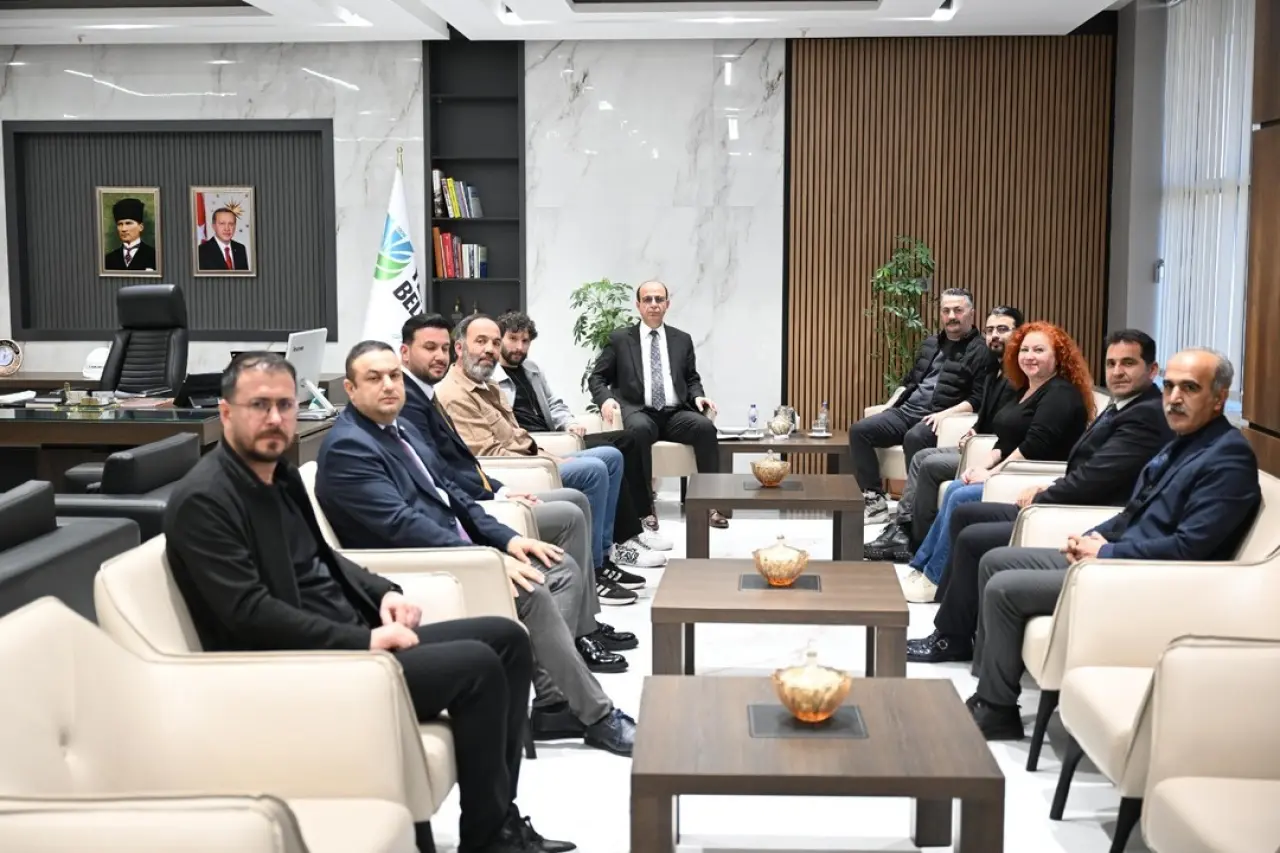 Yönetmenler Ahmet Kapucu, Abdullah Harun İlhan ve sanatçılar Başkan Geçit'i ziyaret etti. Sanata verdikleri destek için teşekkürlerini ilettiler.