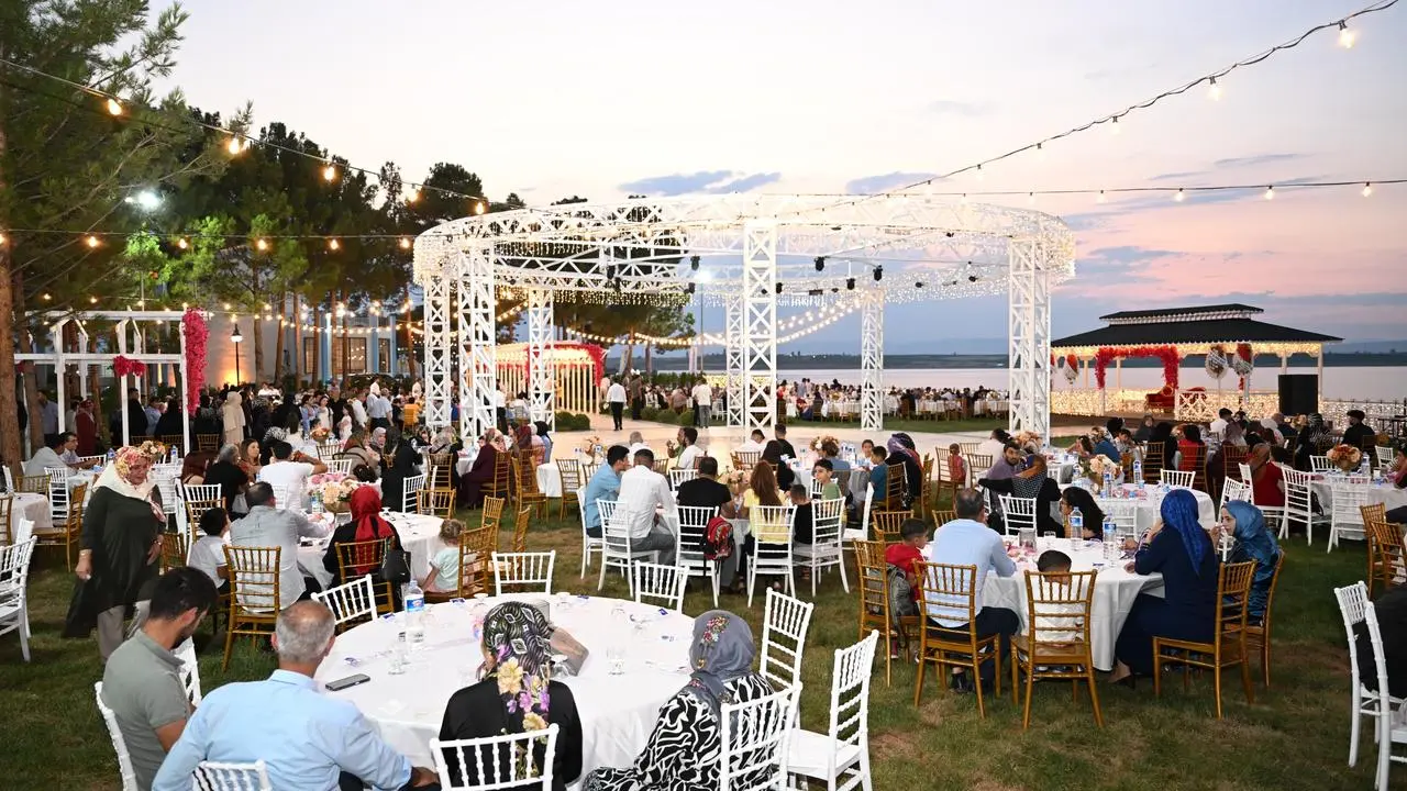 Kırkgöz Sahil Parkı'ndaki salon 2 bin kişilik kapasiteye sahip. Gölet manzarası ve yeşil doku misafirlere huzurlu bir atmosfer sunuyor.