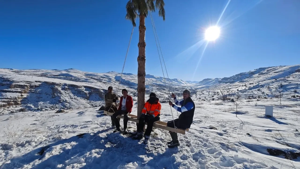 Dört arkadaş, kurdukları salıncak üzerinde de vakit geçirerek kışın keyfini sürdü. Soğuk havaya rağmen unutulmaz bir gün geçirdiklerini ifade ettiler.