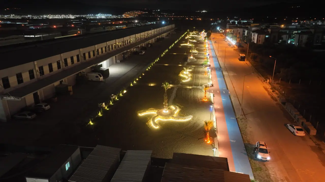 Sanayi bölgesi ile konutlar arasındaki geçiş alanı, modern düzenlemelerle yenilendi. Enerji tasarruflu aydınlatmalar, hem estetik hem de güvenli bir ortam sağladı.