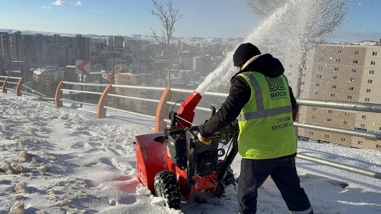 Mardin'de yoğun kar yağışının ardından karla mücadele çalışmaları tüm hızıyla devam ediyor. Büyükşehir Belediyesi ekipleri, kent genelinde yol açma ve temizlik faaliyetlerini sürdürüyor.