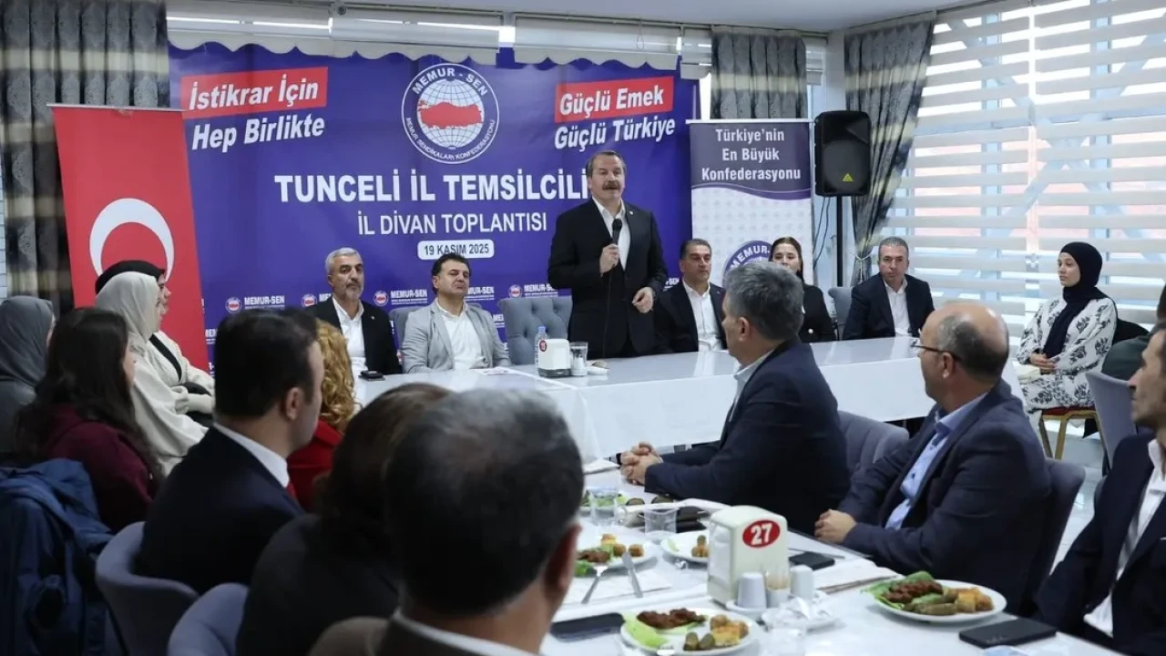 Memur-Sen Genel Başkanı Ali Yalçın, Tunceli İl Divan Toplantısı'nda teşkilat mensuplarıyla bir araya geldi. Toplantı kamu çalışanlarının sorunları ve sendikal çalışmalara odaklandı.