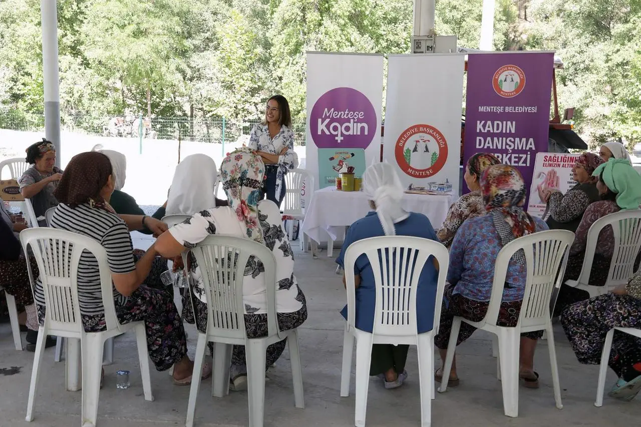 Menteşe Belediyesi, toplumsal cinsiyet eşitliği çalışmalarını kırsal mahallelere taşımaya devam ediyor. Yemişendere Mahallesi'nde kadınlara hukuki haklar ve sosyal destek mekanizmaları hakkında bilgi verildi.