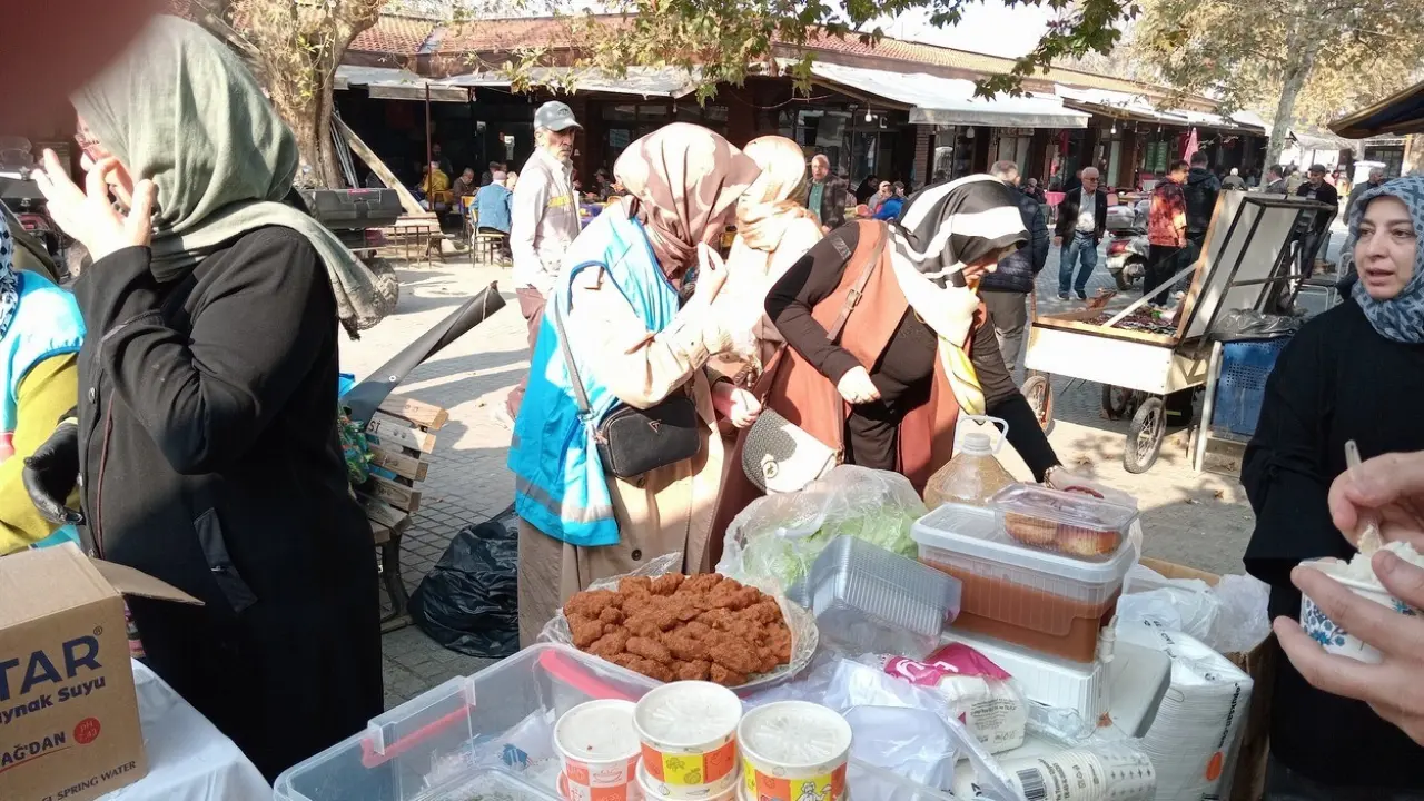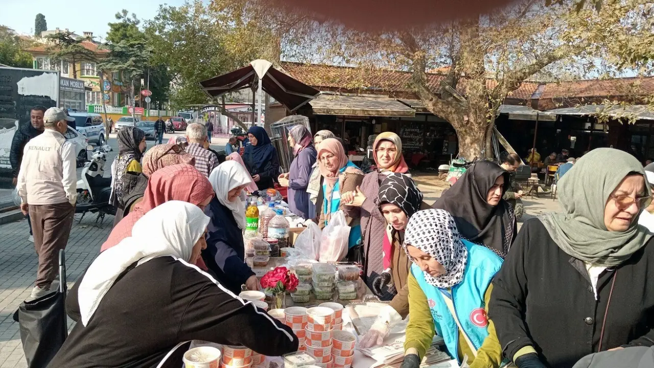 Mudanya'da Gazze için düzenlenen hayır panayırında kadınların hazırladığı ürünler satışa sunuldu.