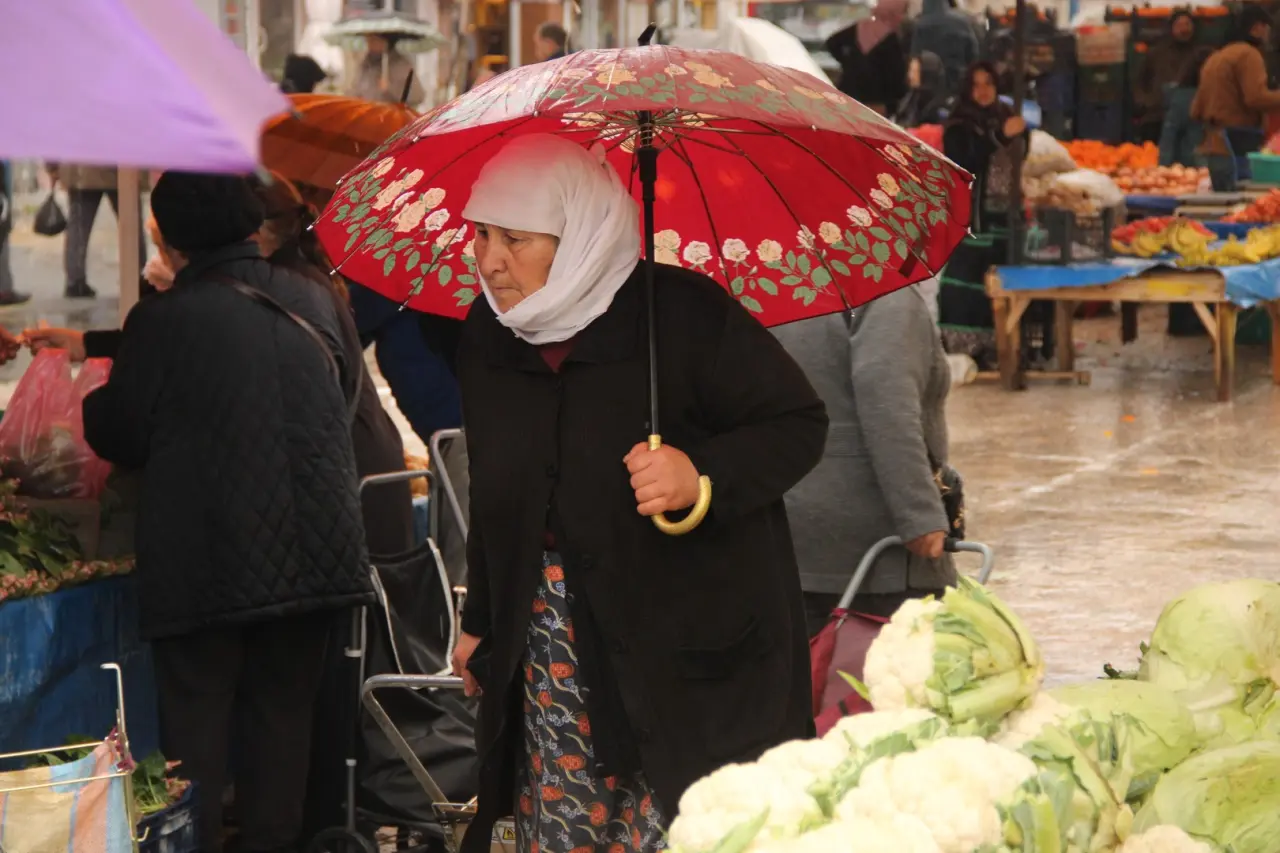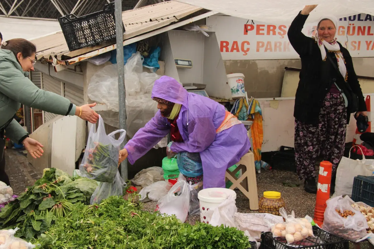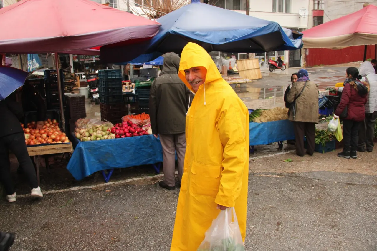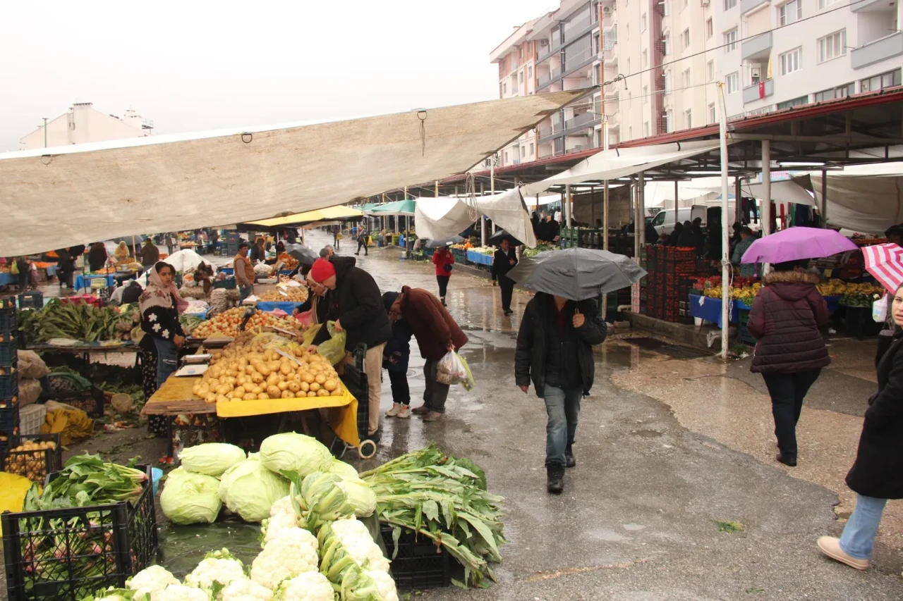 Meteoroloji'nin sarı kodlu uyarısına karşın pazar alanı renkli görüntülere sahne oldu. Yağmur altında alışveriş yapanların mücadelesi dikkat çekti.