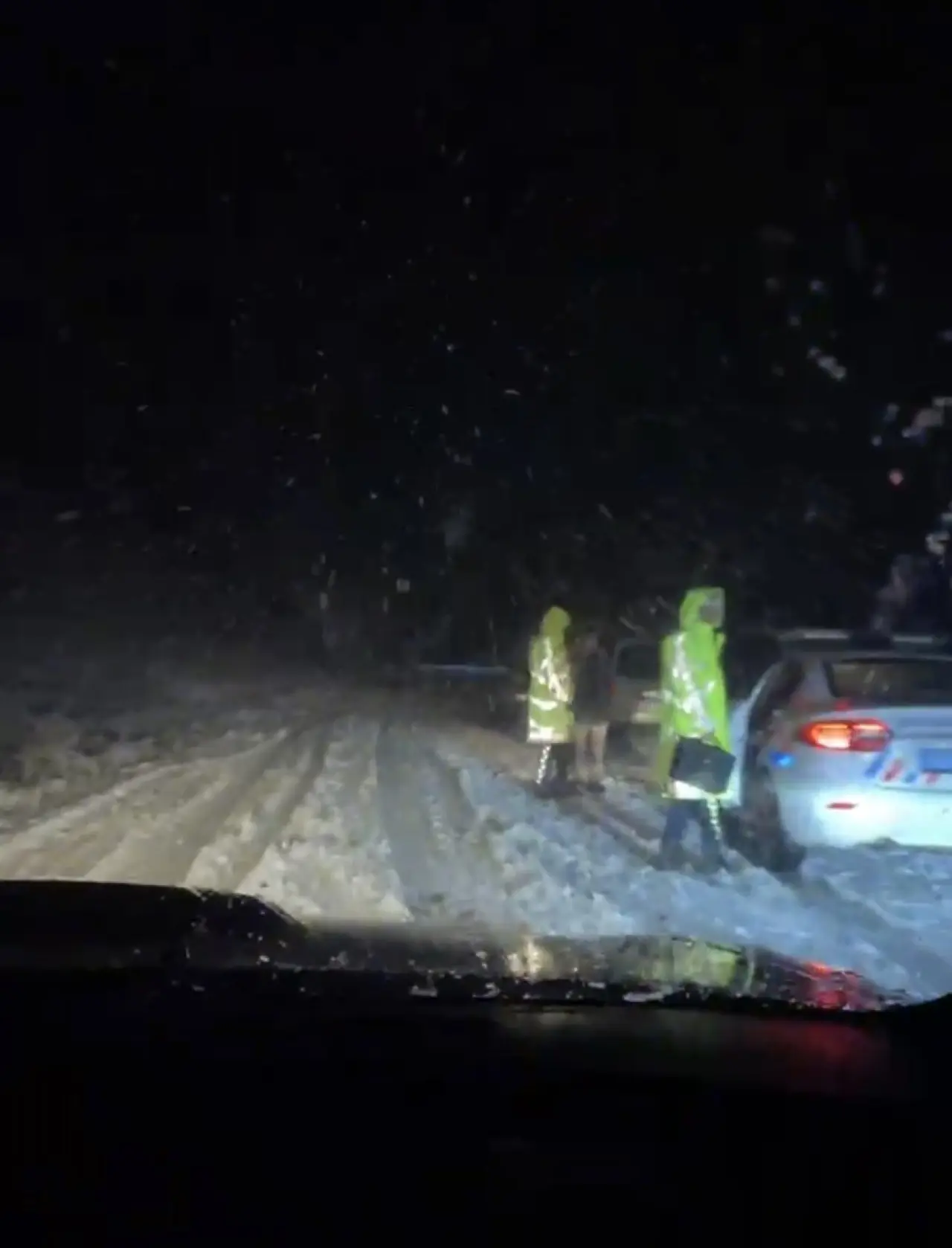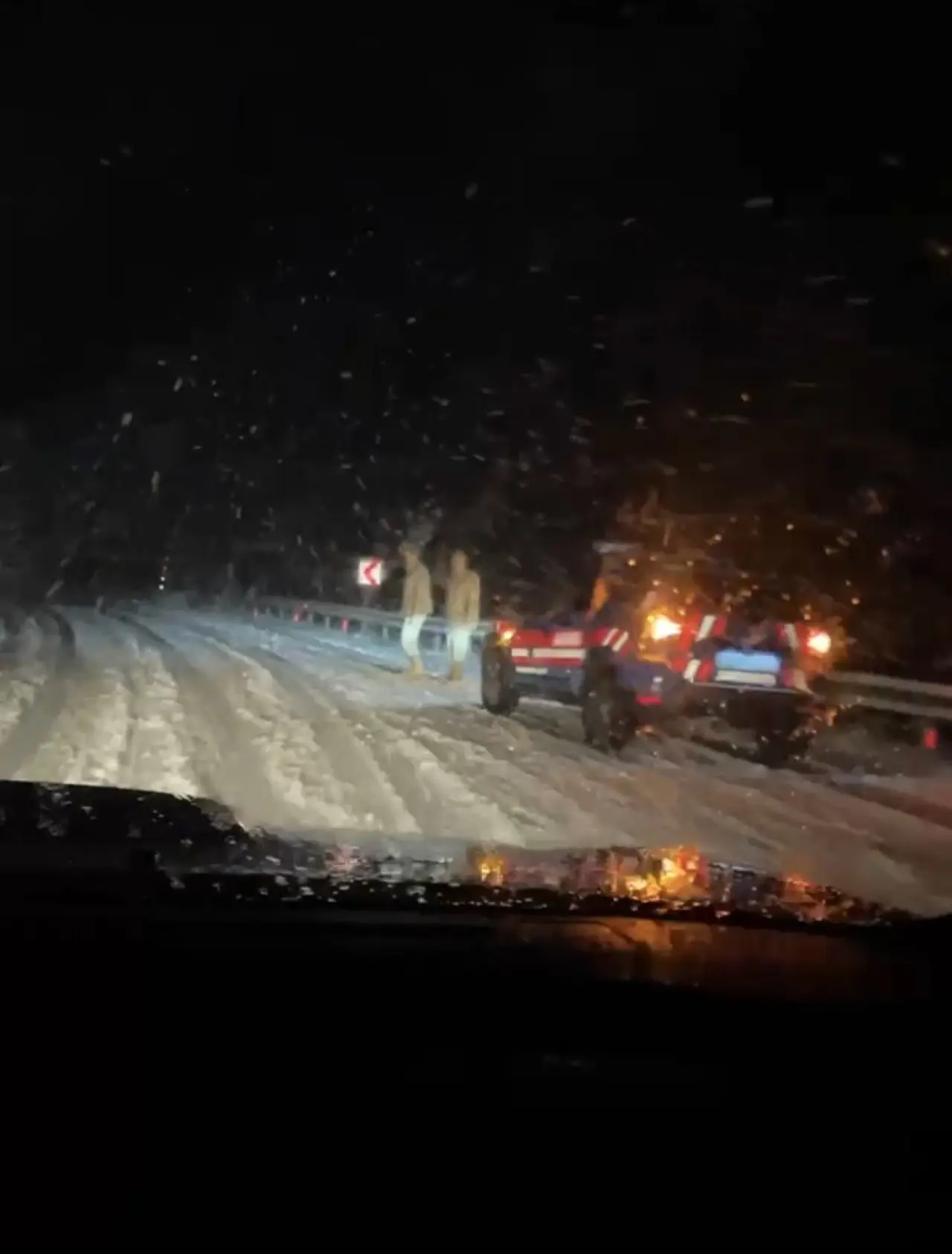 Ekipler sürücülere zincir ve kar lastiği uyarısı yaptı. Bölgede etkili olan kar yağışının devam edeceği bildirildi.