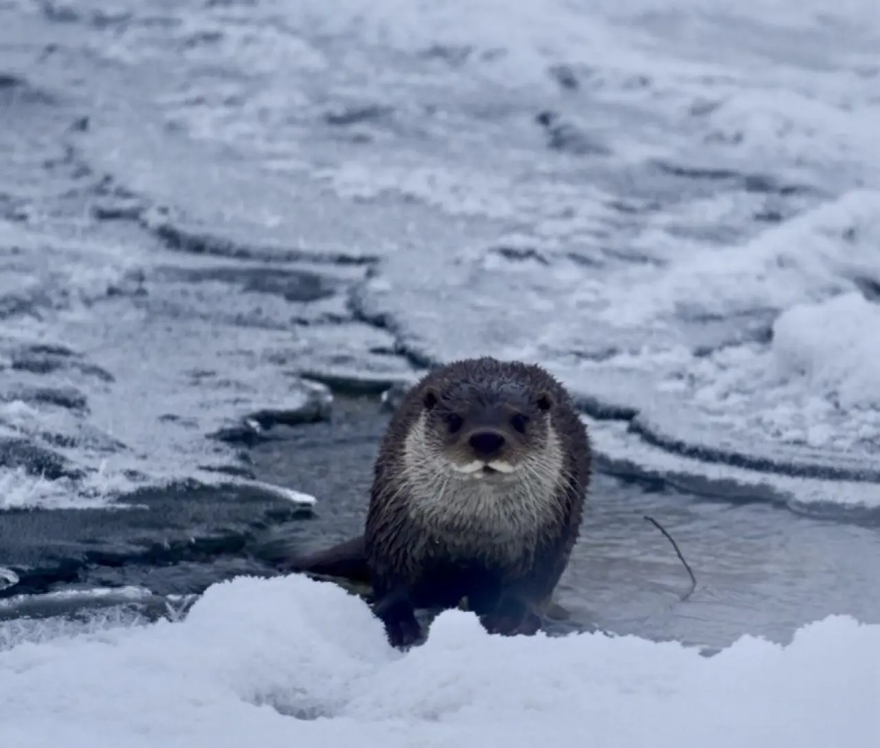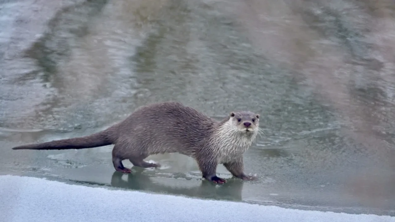 Dondurucu soğuklar nedeniyle nehir büyük ölçüde buz tuttu. Fotoğrafçılar, su samurunu yiyecek ararken kaydetme fırsatı buldu.