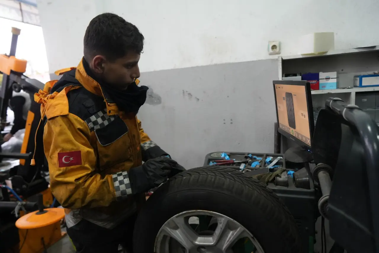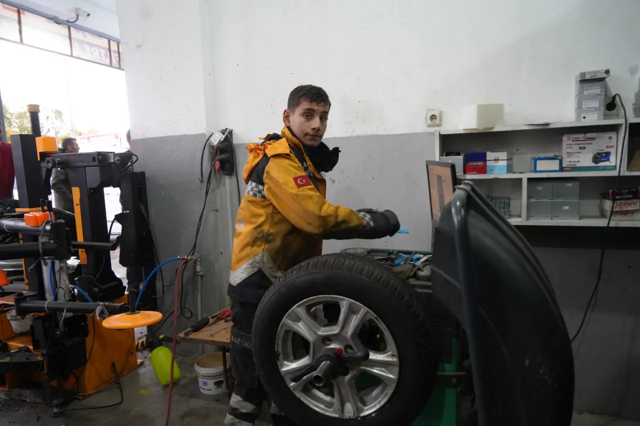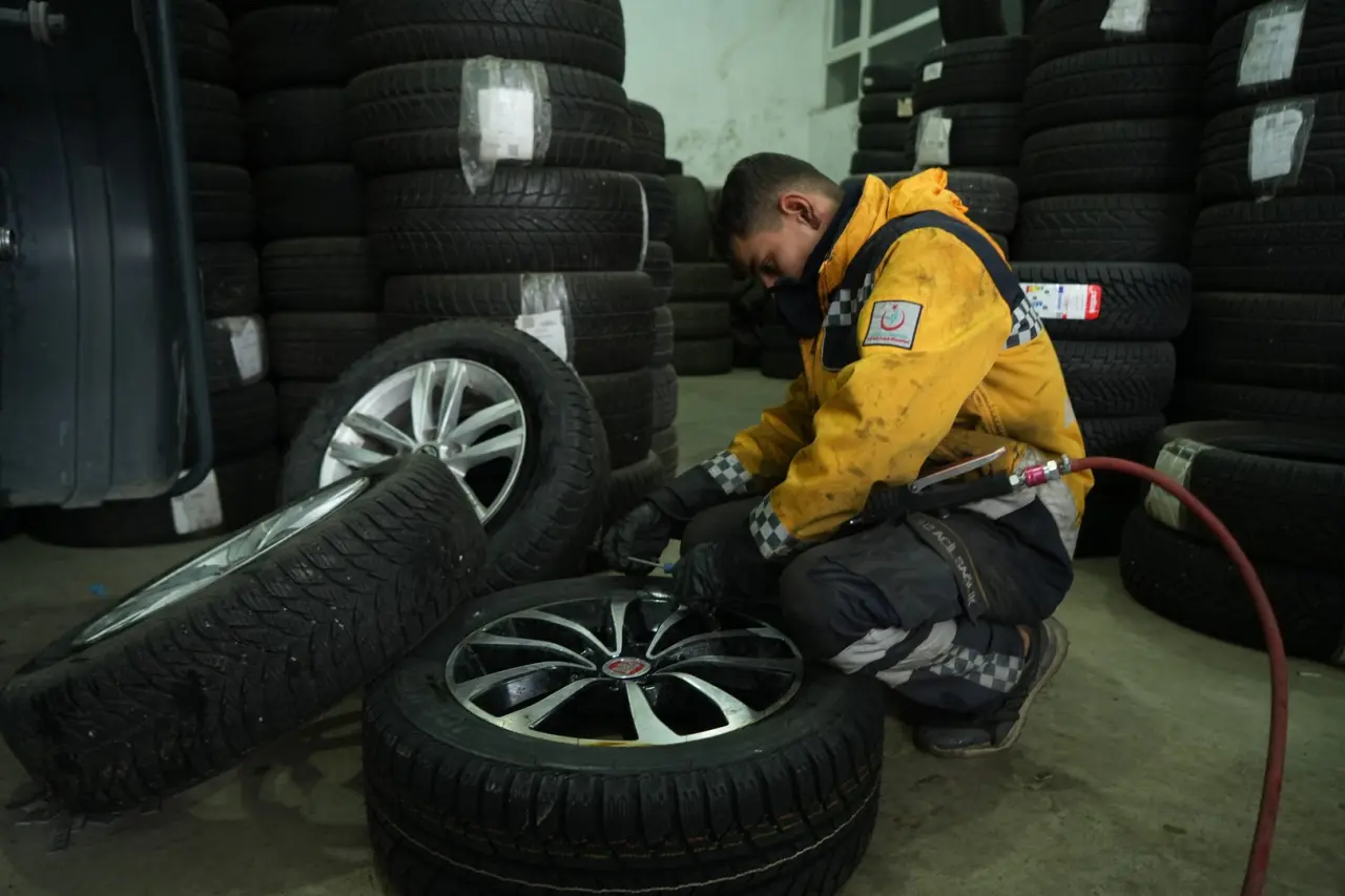 Muş'ta sokak köpeklerinin saldırısına uğrayan tavuk, lastikçi dükkanına sığınarak hayatta kalmayı başardı.