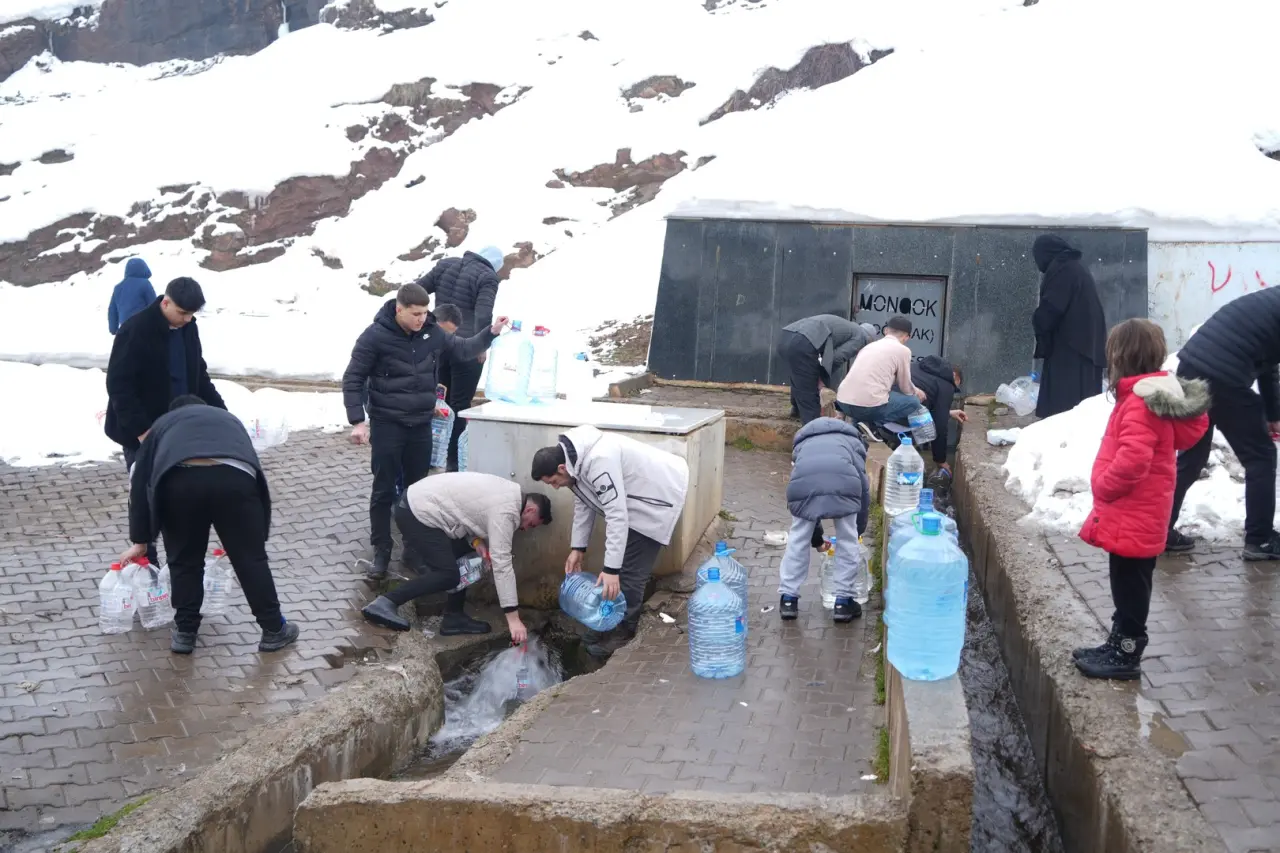 Vatandaşlar, Mongok Çeşmesi'nden bidonlarla su alarak ihtiyaçlarını karşılıyor. Şebeke suyunun kötü kokusu ve kirli olduğu iddiaları üzerine yetkililere durum bildirildi.