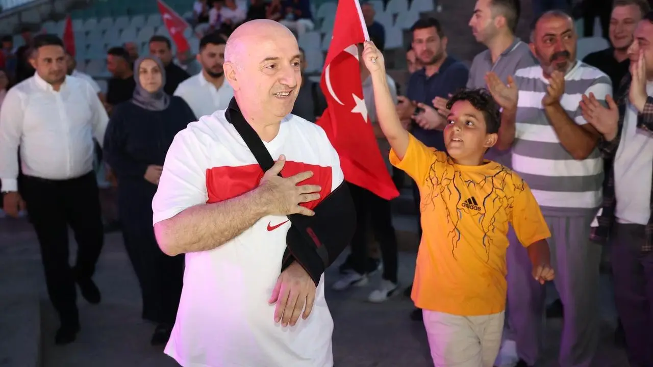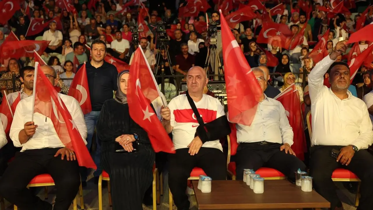 Başkan Bıyık, kaza sonrası istirahat raporu olmasına karşın anma programına katıldı. Kolundaki sargıyla şehitler için dua etti ve demokrasi nöbetine destek verdi.