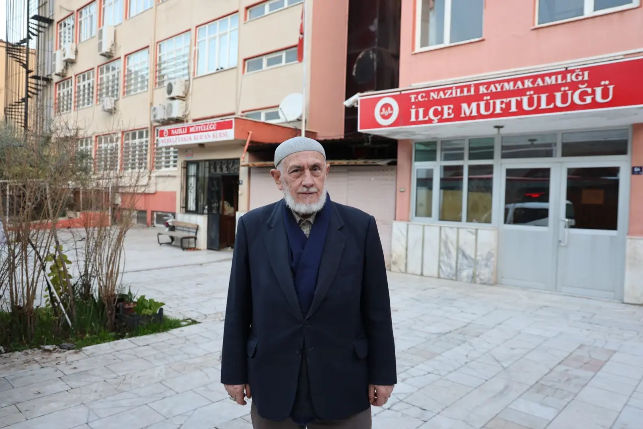 78 yaşındaki Hafız Ahmet Avcı, 63 yıldır Nazilli Koca Camii avlusunda Kur’an öğretiyor. Emekli olmasına rağmen 20 yıldır gönüllü hizmet veriyor.