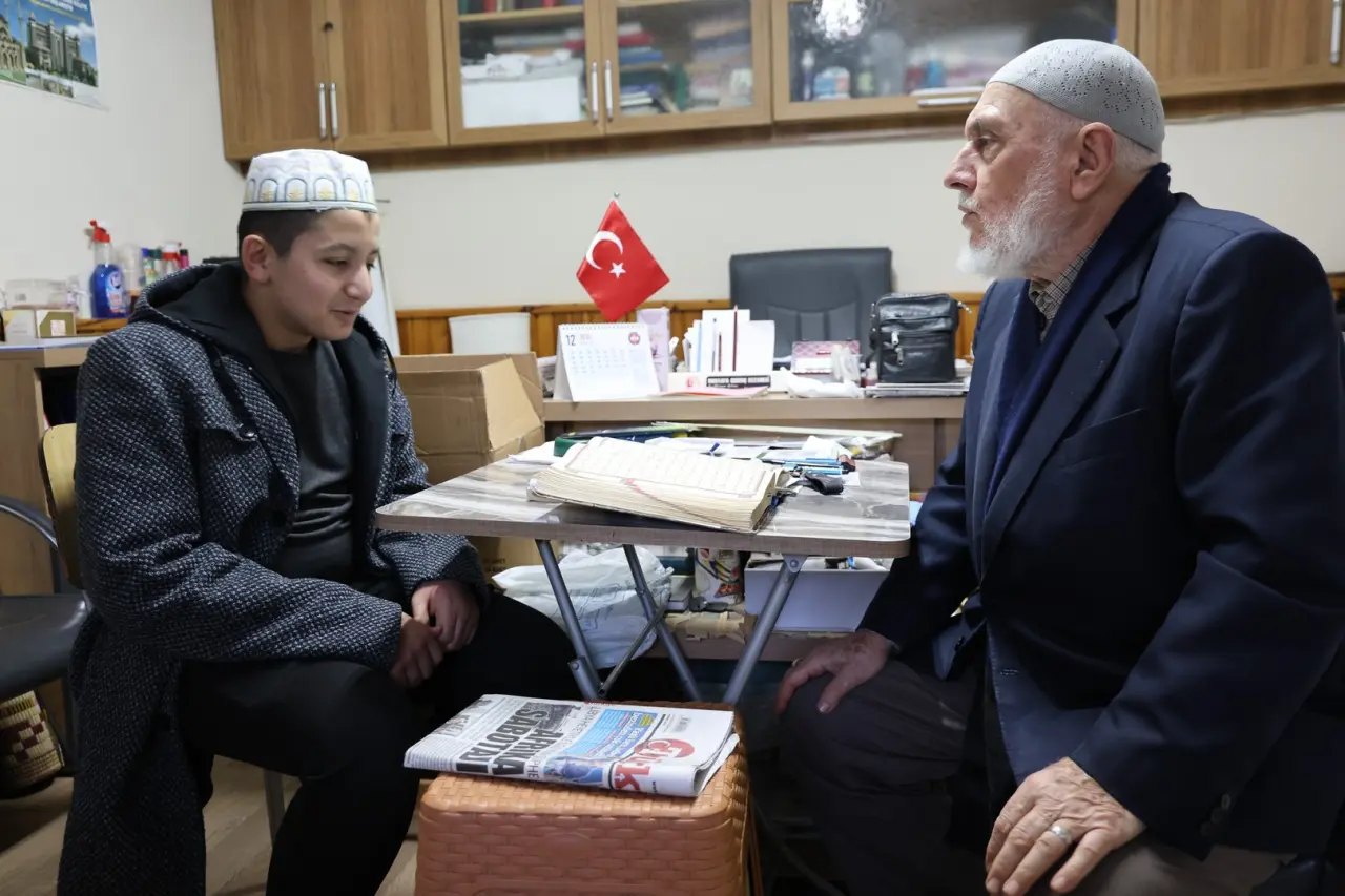 Hafızlık çalışanların derslerini dinleyerek onlara rehberlik ediyor. Bu yolda ilerlemek, onun için en büyük mutluluk kaynağı.
