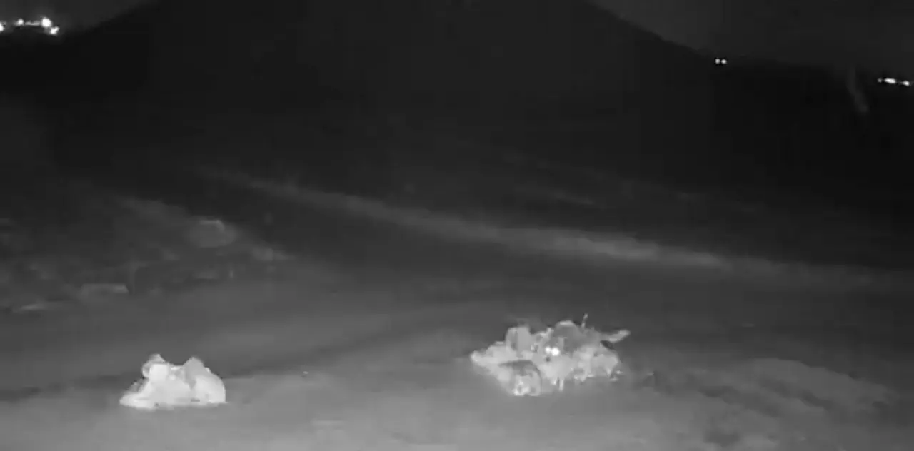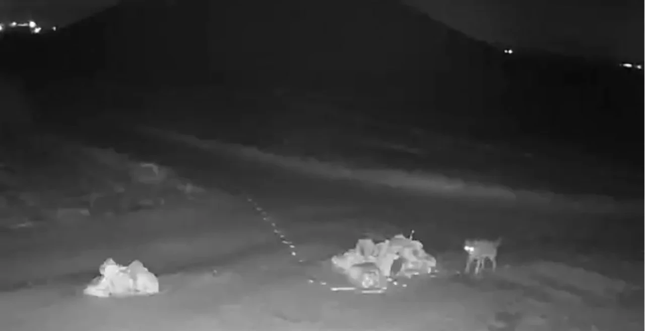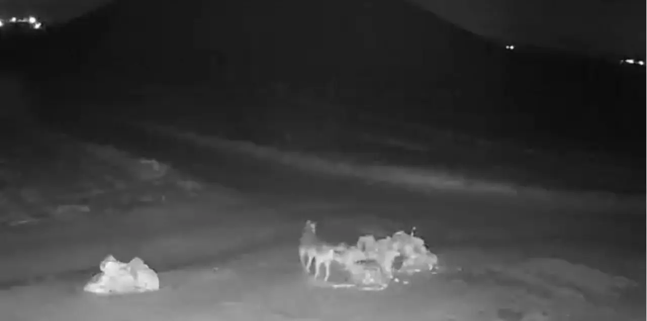 Köy sakinleri tarafından fark edilen kurtlar, güvenlik kameraları tarafından da kaydedildi. Görüntülerde aç oldukları tahmin edilen hayvanların yiyecek aradıkları gözlendi.