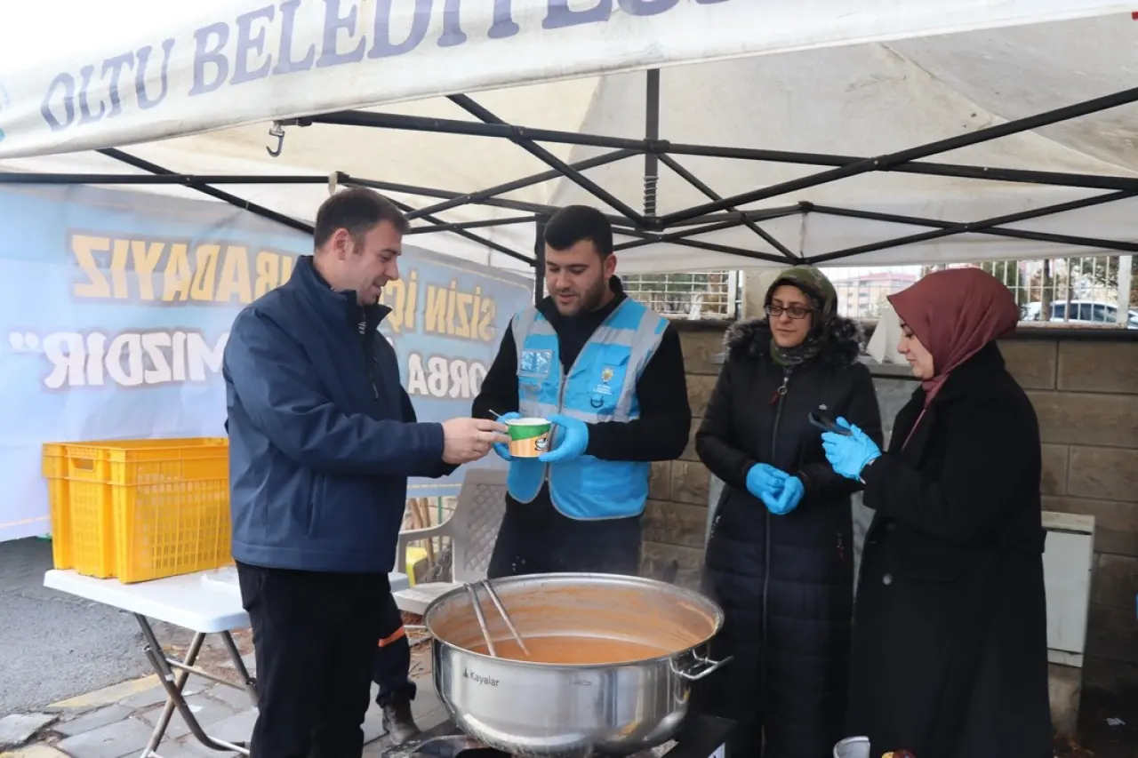 Erzurum'un Oltu ilçesinde soğuk kış günlerinde pazarcılar ve vatandaşlar için ücretsiz çorba dağıtımı başlatıldı. Bu uygulama, Oltu Belediyesi tarafından halk pazarı girişinde kurulan stantta gerçekleştiriliyor.