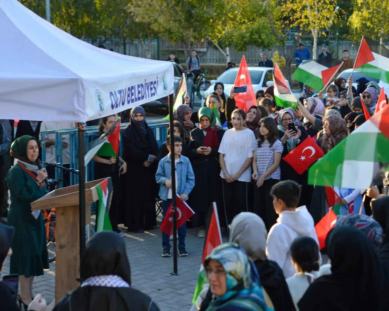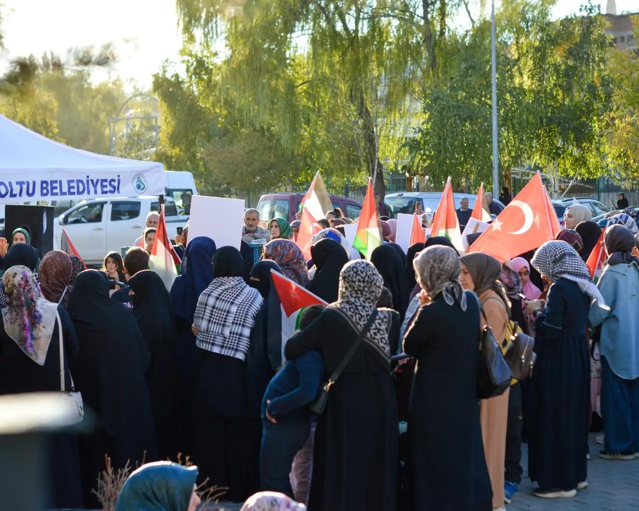 Kale Meydanı'nda yapılan konuşmaların ardından Oltu caddelerinde yürüyüş düzenlendi. Mazlum coğrafyalar için destek mesajları verildi.