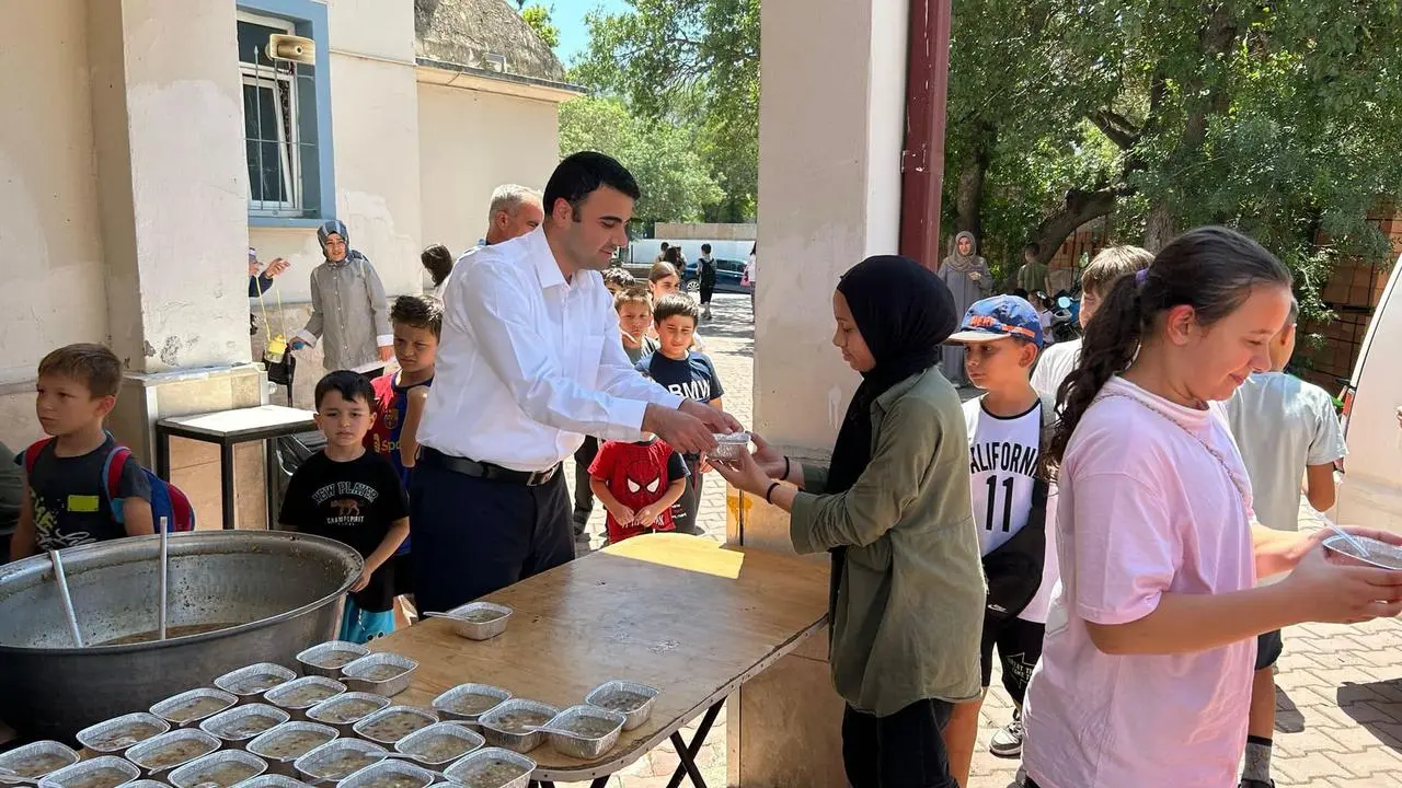 Kaymakam Kılıç, Ayşe Göllü Camii ve Gençlik Merkezi'nde düzenlenen etkinlikte öğrencilerle bir araya geldi. Kendi elleriyle aşure dağıtarak çocuklarla samimi bir sohbet gerçekleştirdi.