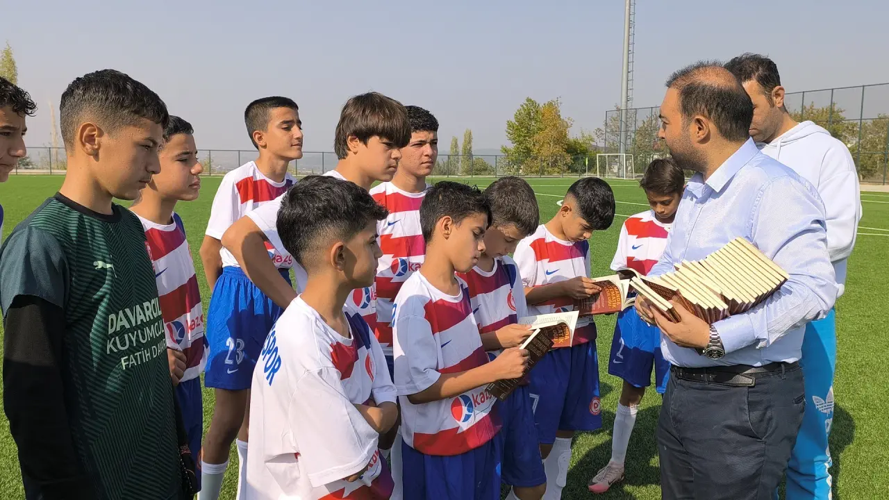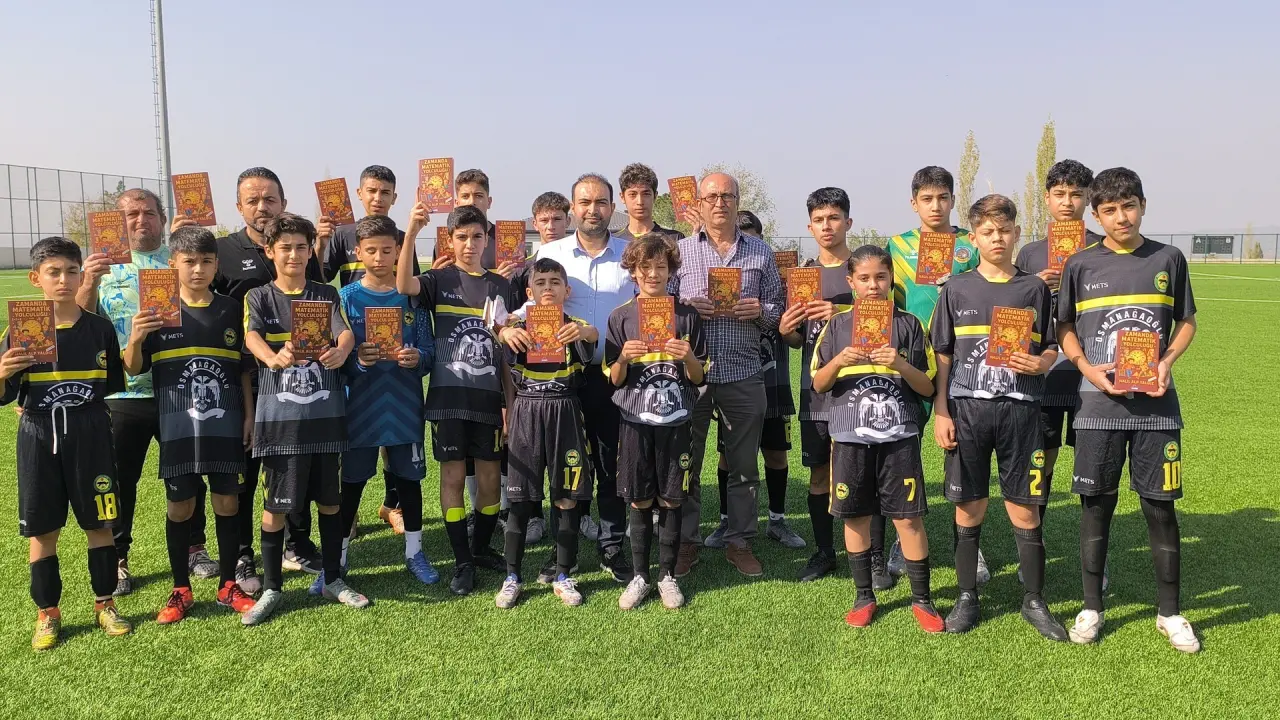 Osmaniye'de gençlere matematiği sevdirmek için U-14 Gençler Ligi maçlarında "Zamanda Matematik Yolculuğu" kitabı hediye edildi.