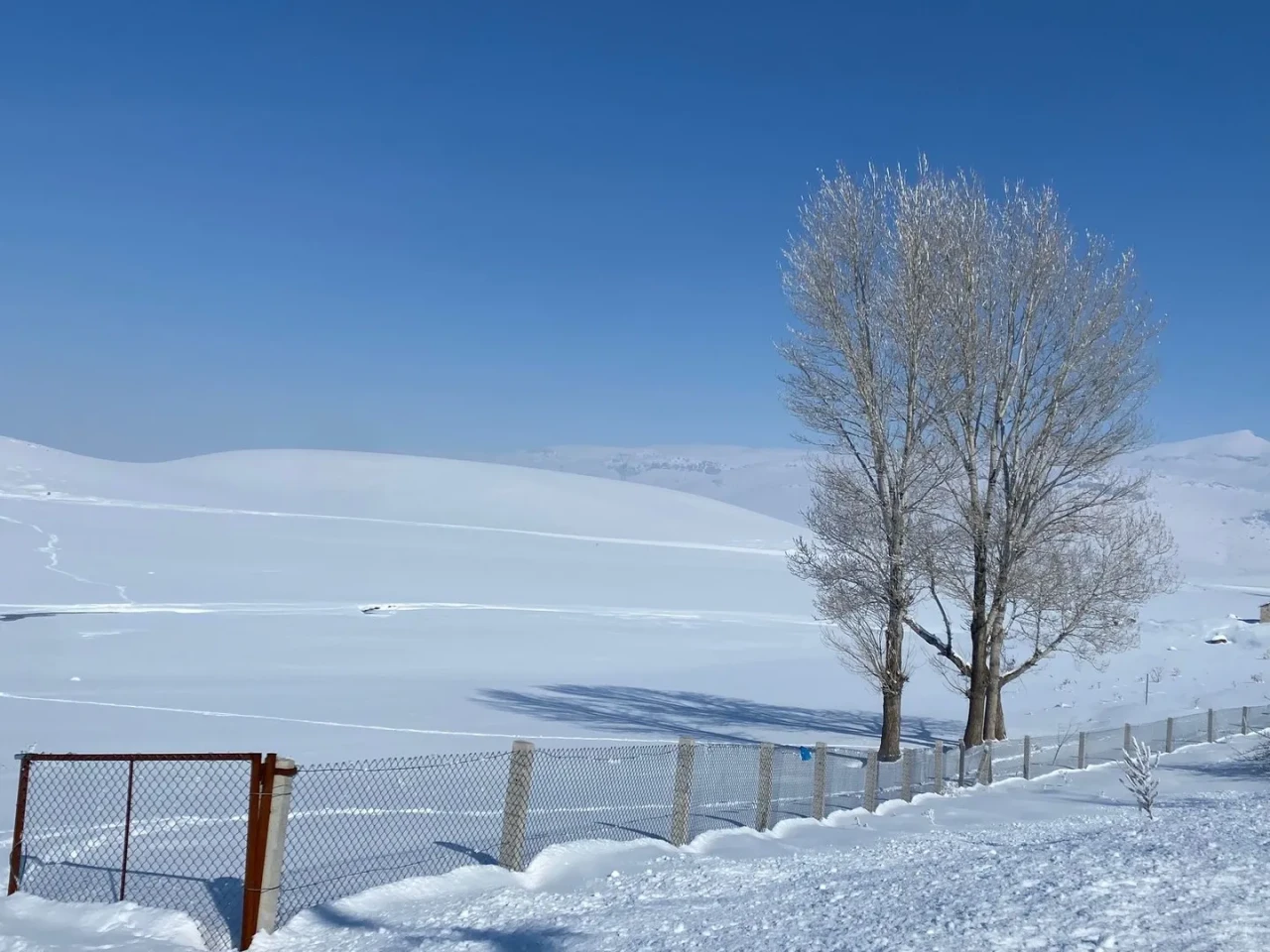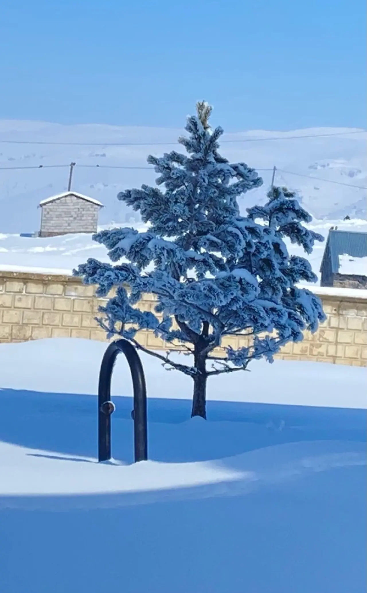 Karın ince ince işlenmiş dantel gibi her yeri sarması, köyü adeta bir tabloya dönüştürdü. Doğayla iç içe yükselen evler ve uçsuz bucaksız beyazlık, görsel bir şölen oluşturdu.
