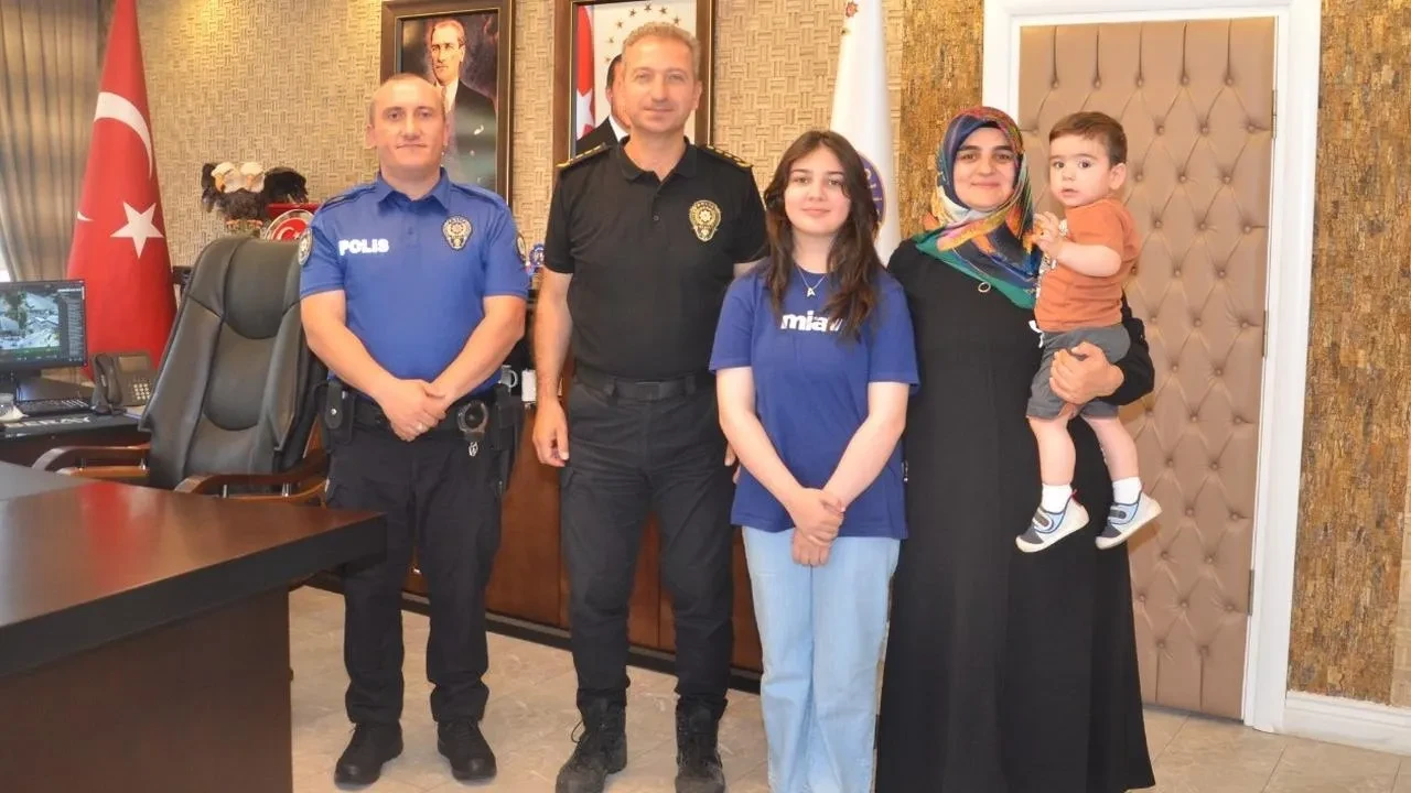 Emniyet Müdürü Saraç, başarılı öğrenciyi ailesiyle birlikte makamında misafir etti. Başarılı öğrenciye hediyeler takdim edilirken, ailenin gururu gözlerinden okundu.