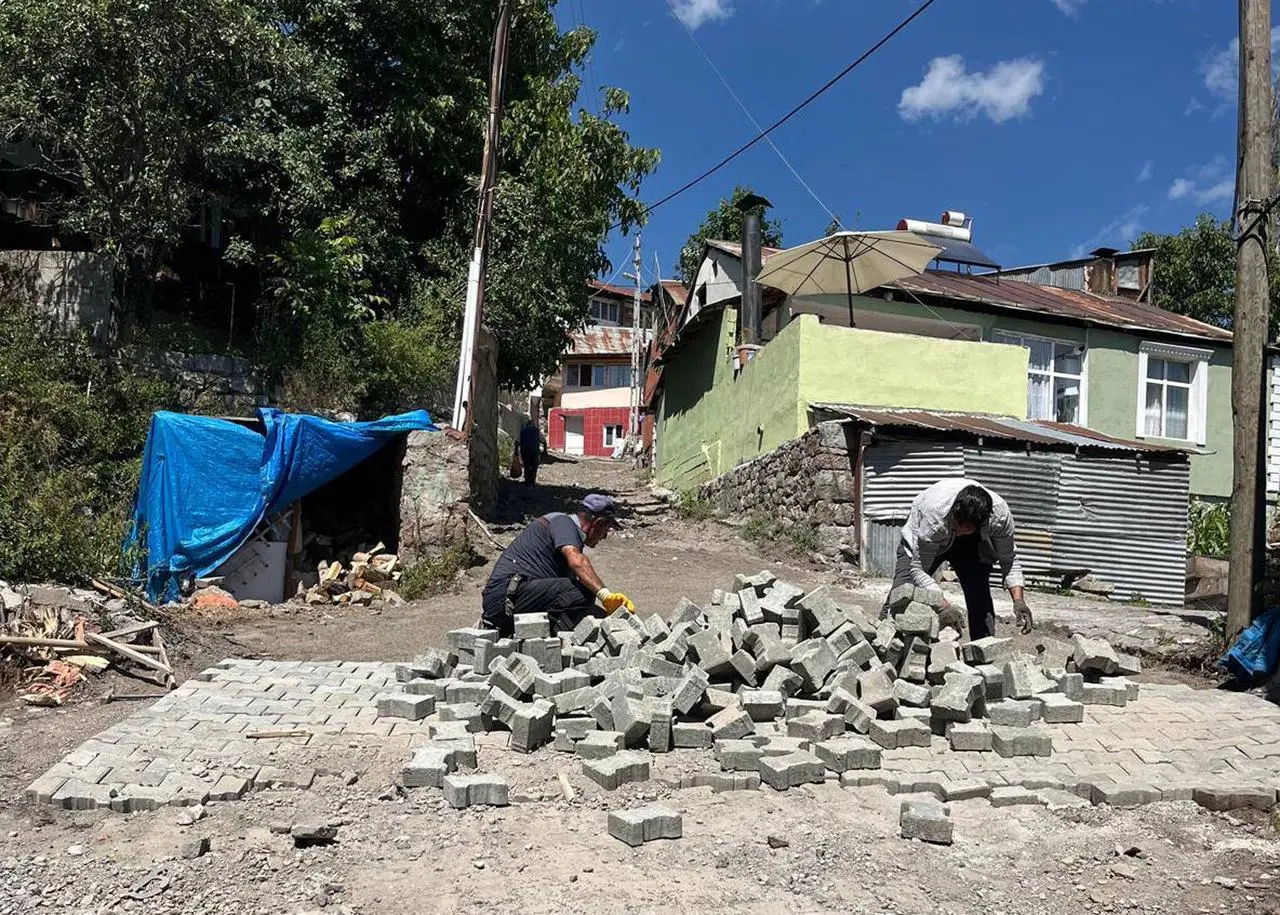 Posof Belediyesi, ilçedeki yol ve kilit parke taşı çalışmalarını aralıksız sürdürüyor.