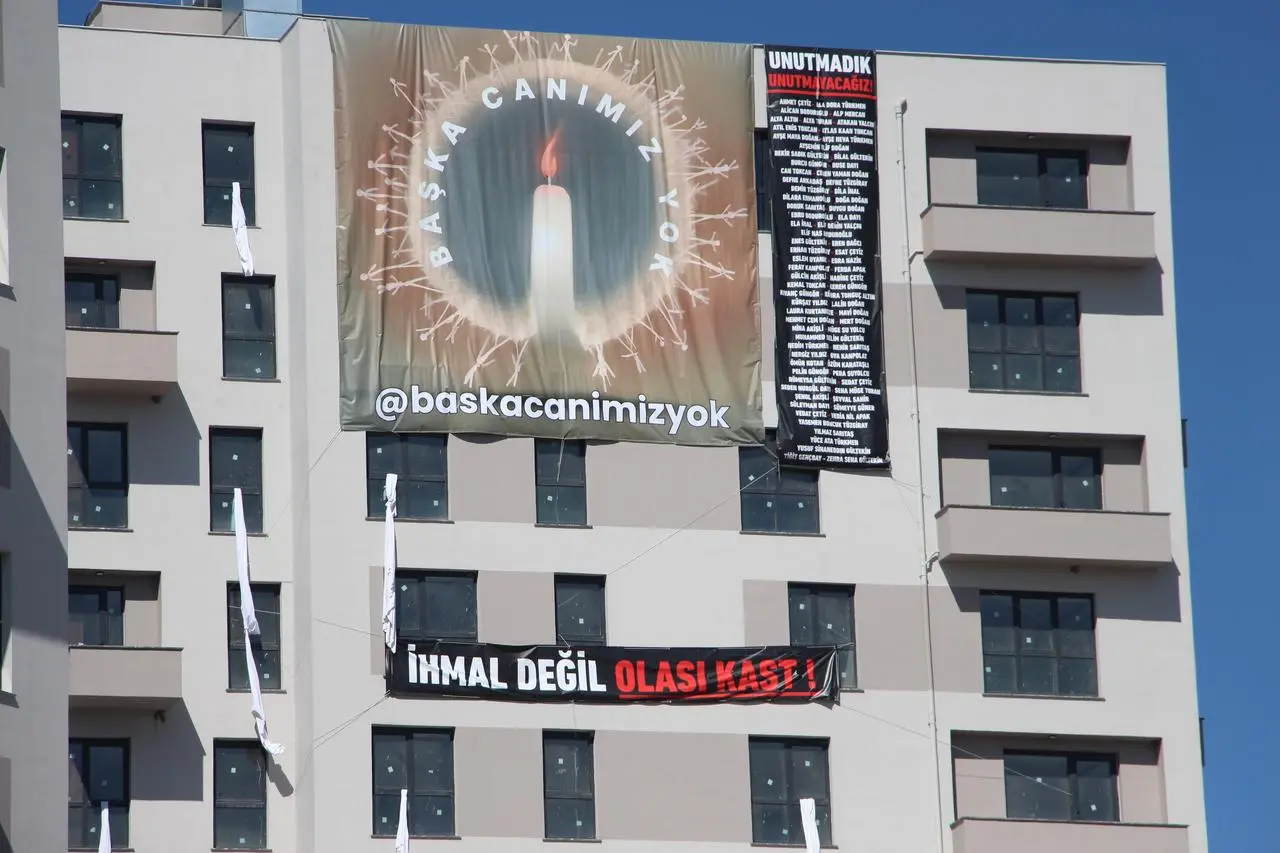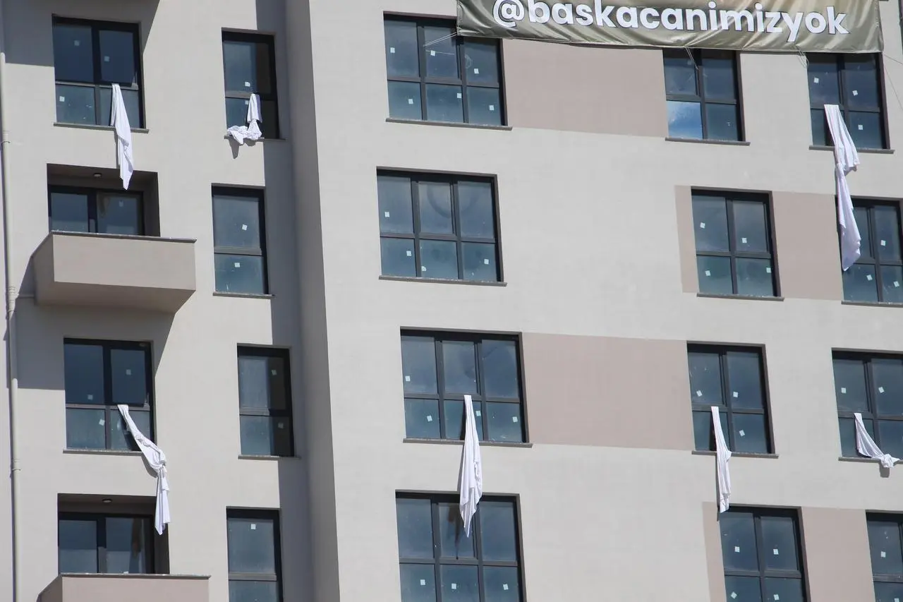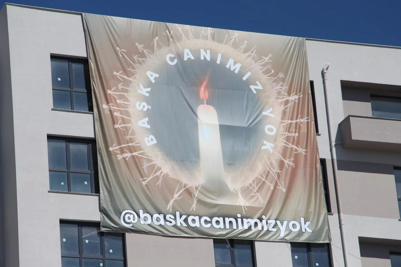 D-100 kara yolu kenarındaki apartmanlara beyaz çarşaflar ve pankartlar asıldı. Üzerinde yanan mum görseli ve "Başka canımız yok" yazısı dikkat çekti.