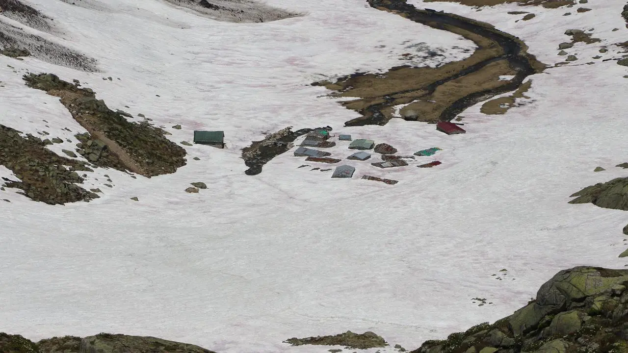 2546 rakımlı Balıklı Yaylası'nda çığ nedeniyle evler karın altında kaldı. Yayla evlerinin sadece çatıları karın üzerinde görünür durumda.