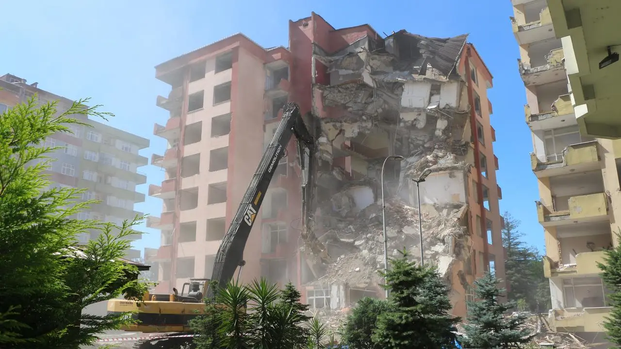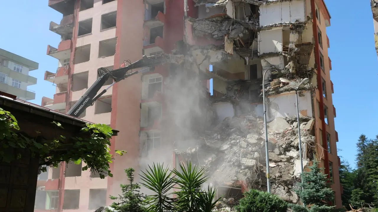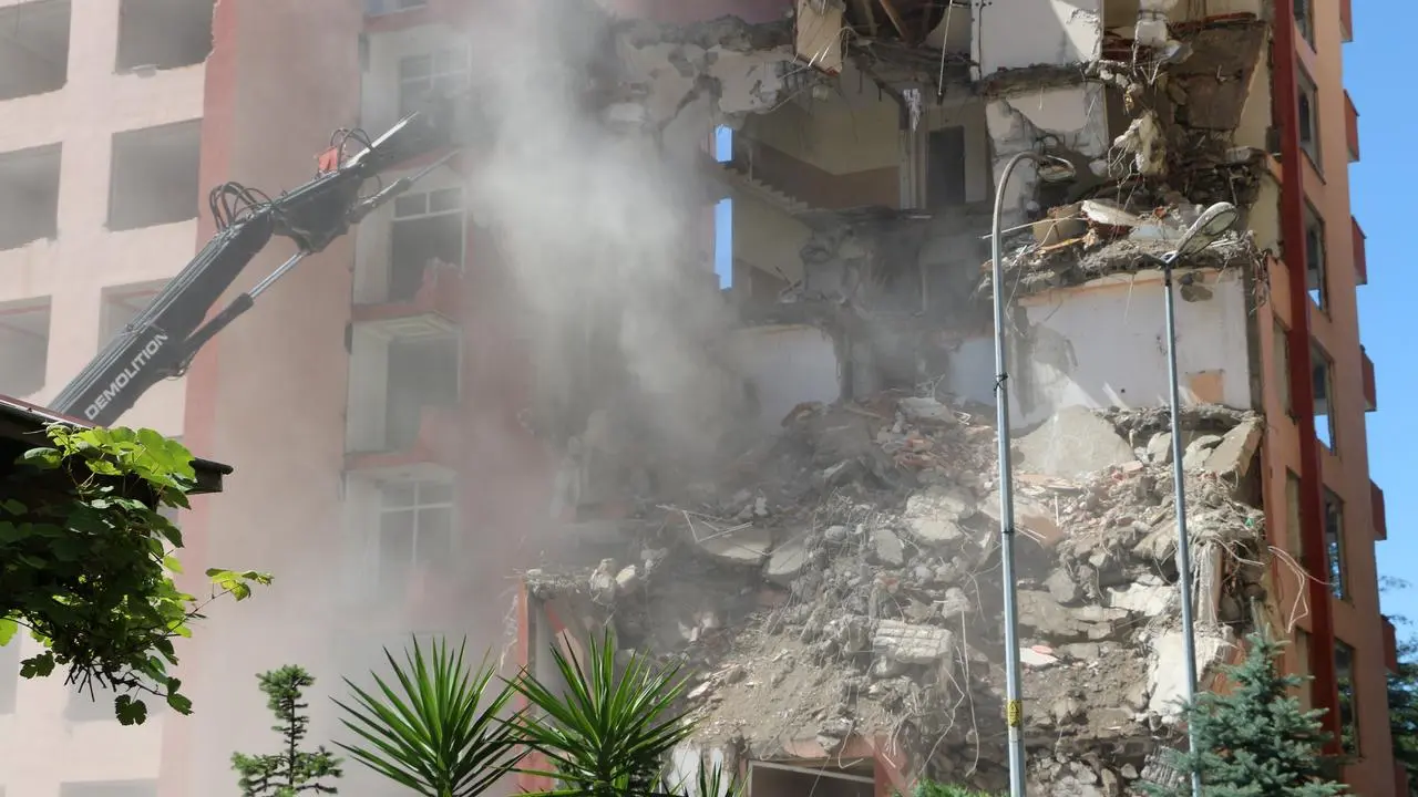Özel iş makineleriyle üst katlardan başlayarak kontrollü yıkım gerçekleştiriliyor. İki binanın da yerine yeni yapılar inşa edilecek.