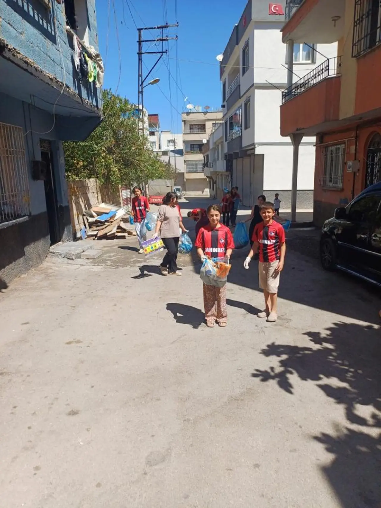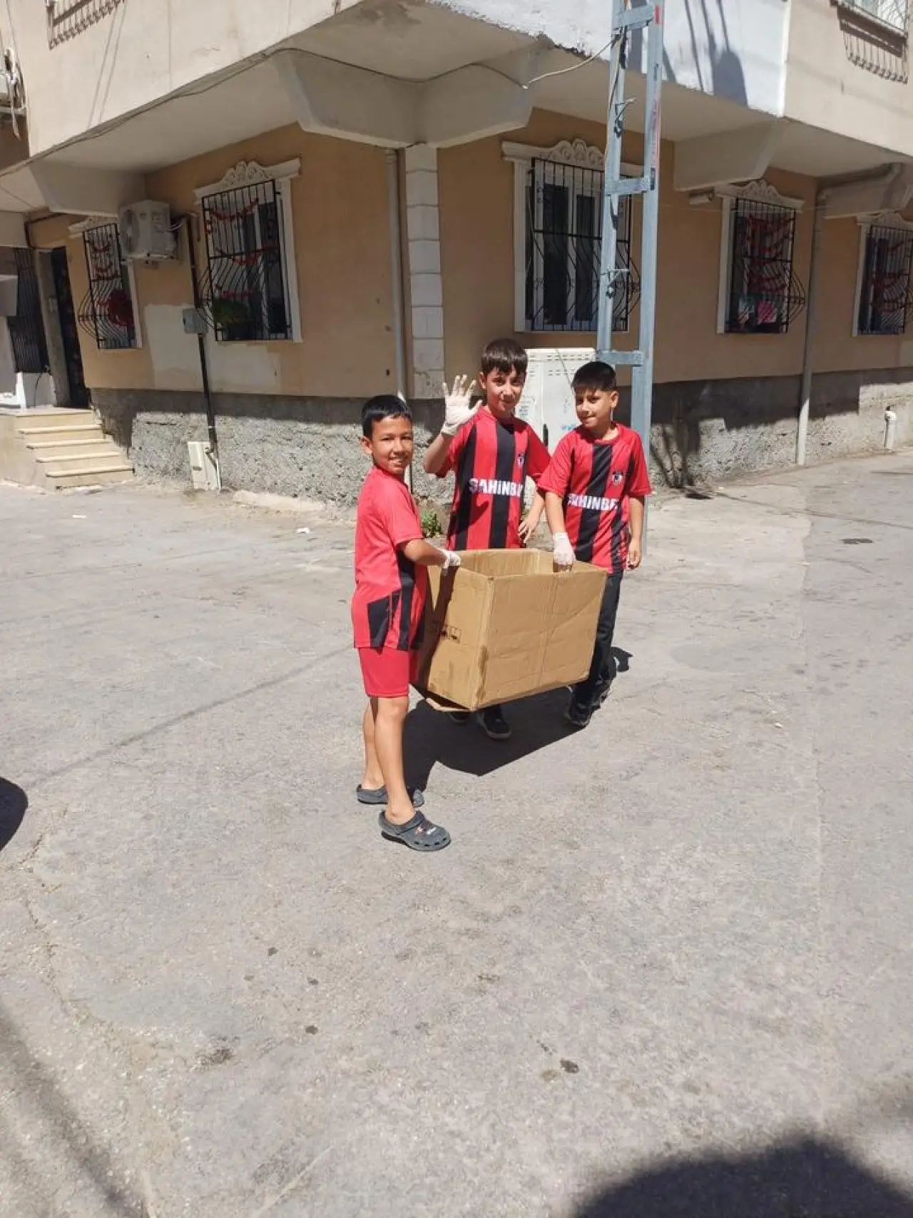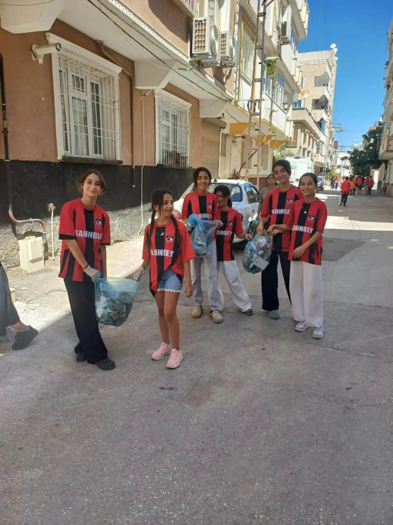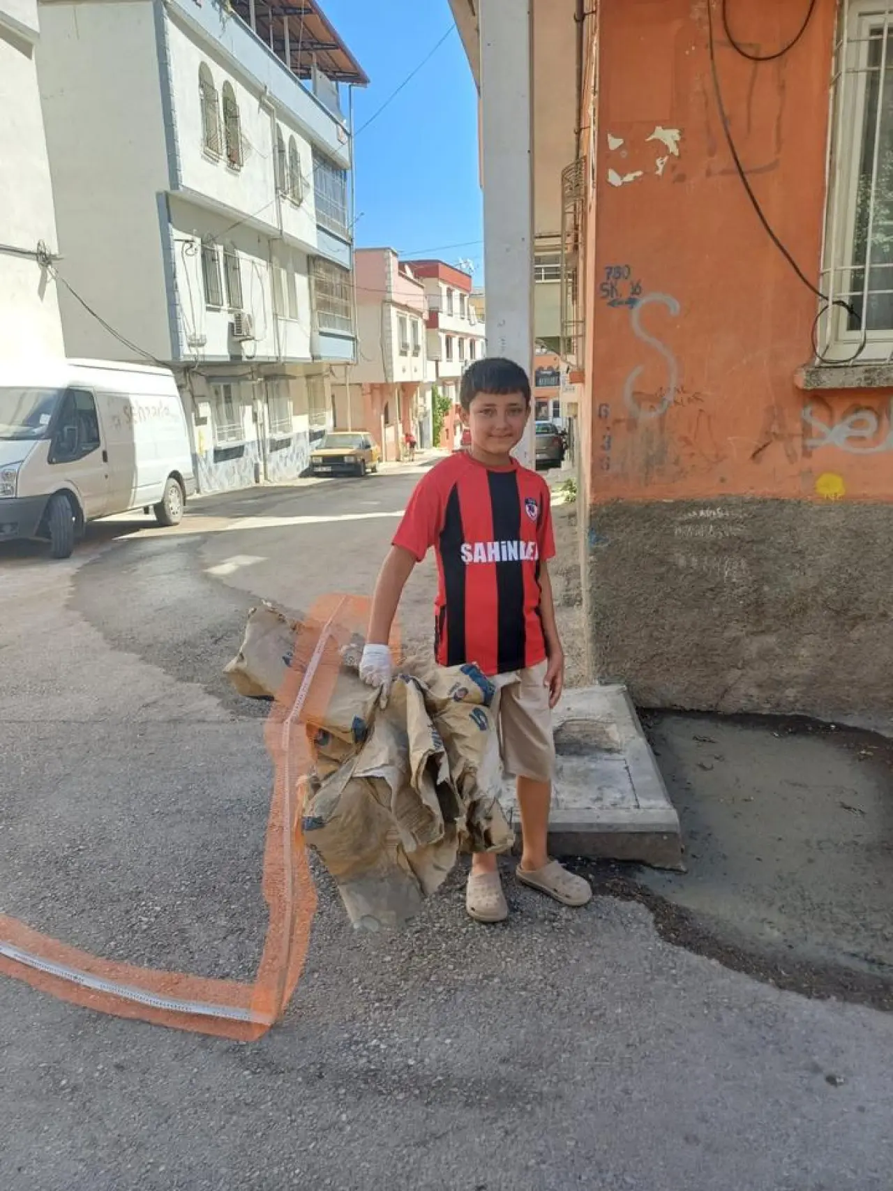 Şahinbeyli çocuklar, mahallelerinde çöp toplayarak çevre temizliğine dikkat çekti.