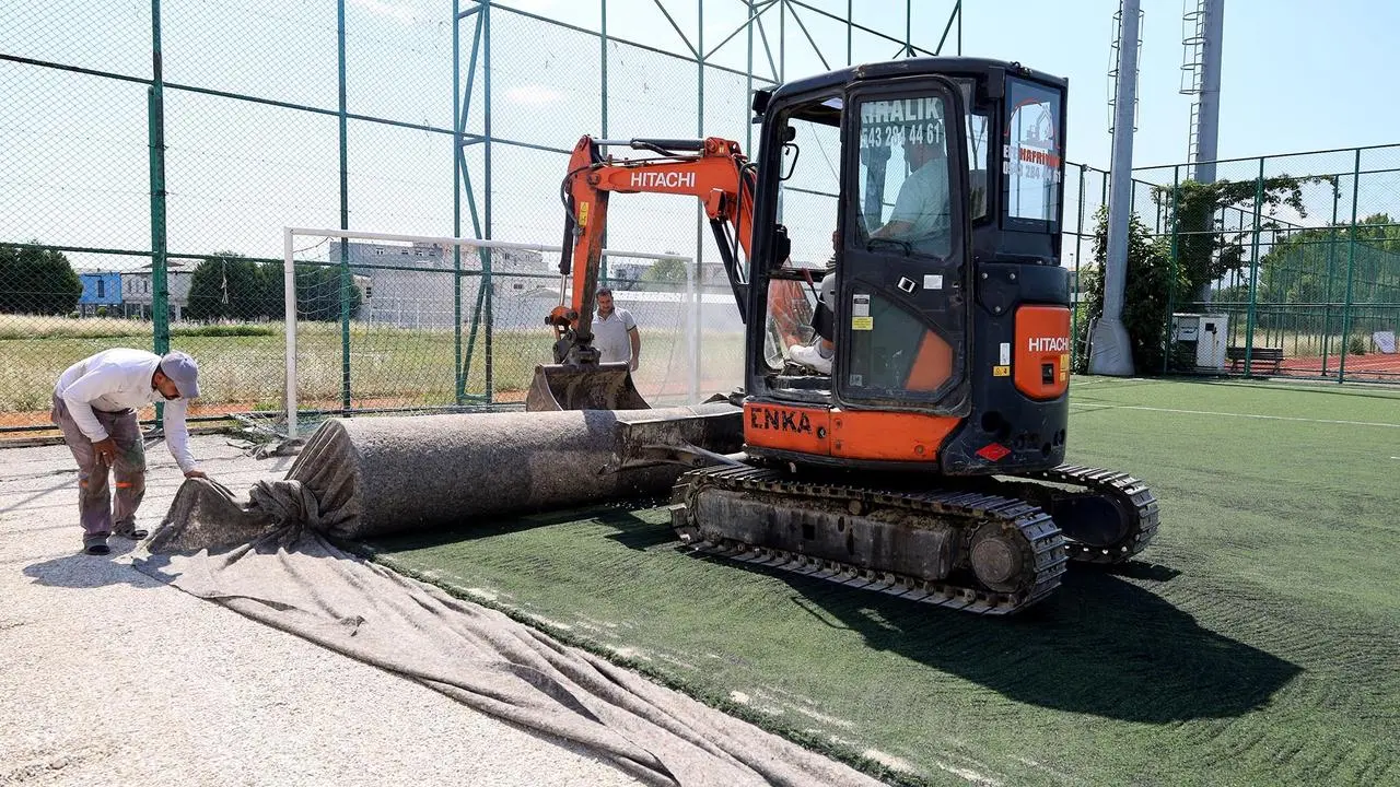 Sakarya Büyükşehir Belediyesi, Ekrem Karaberberoğlu Altyapı Tesisleri'nde kapsamlı bir yenileme çalışması başlattı ve sentetik çimleri değiştiriyor.