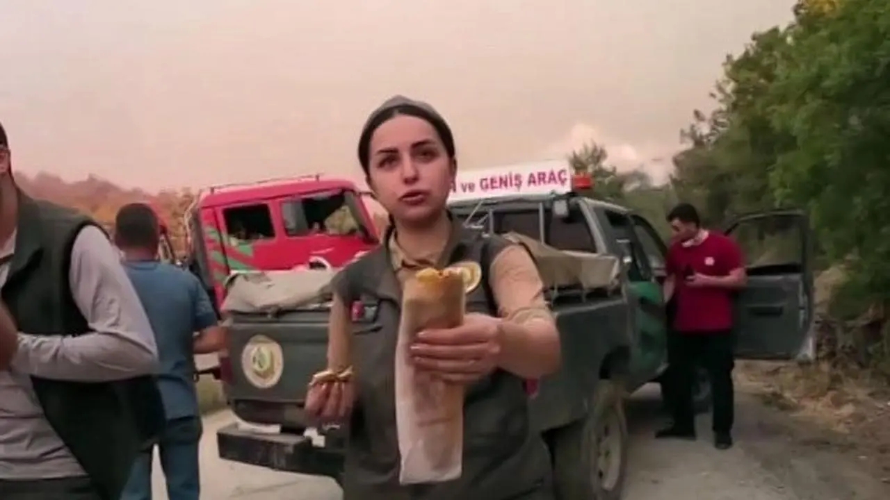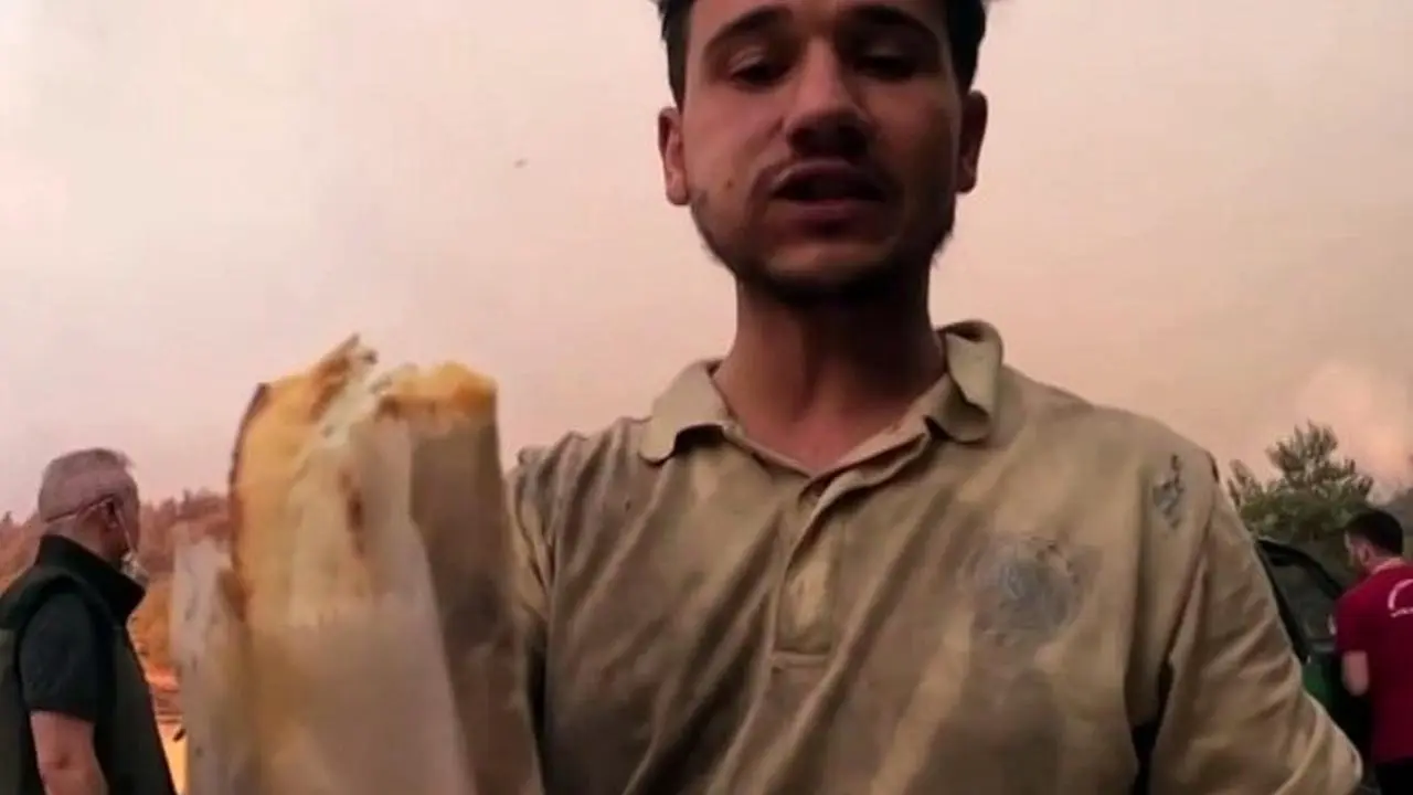 Yangınla mücadele eden ekipler, sıcak ve alevlere rağmen görevlerini sürdürüyor. Bir tas yemekte buluşan ekipler, insanlığın en güzel örneklerinden birini sergiledi.