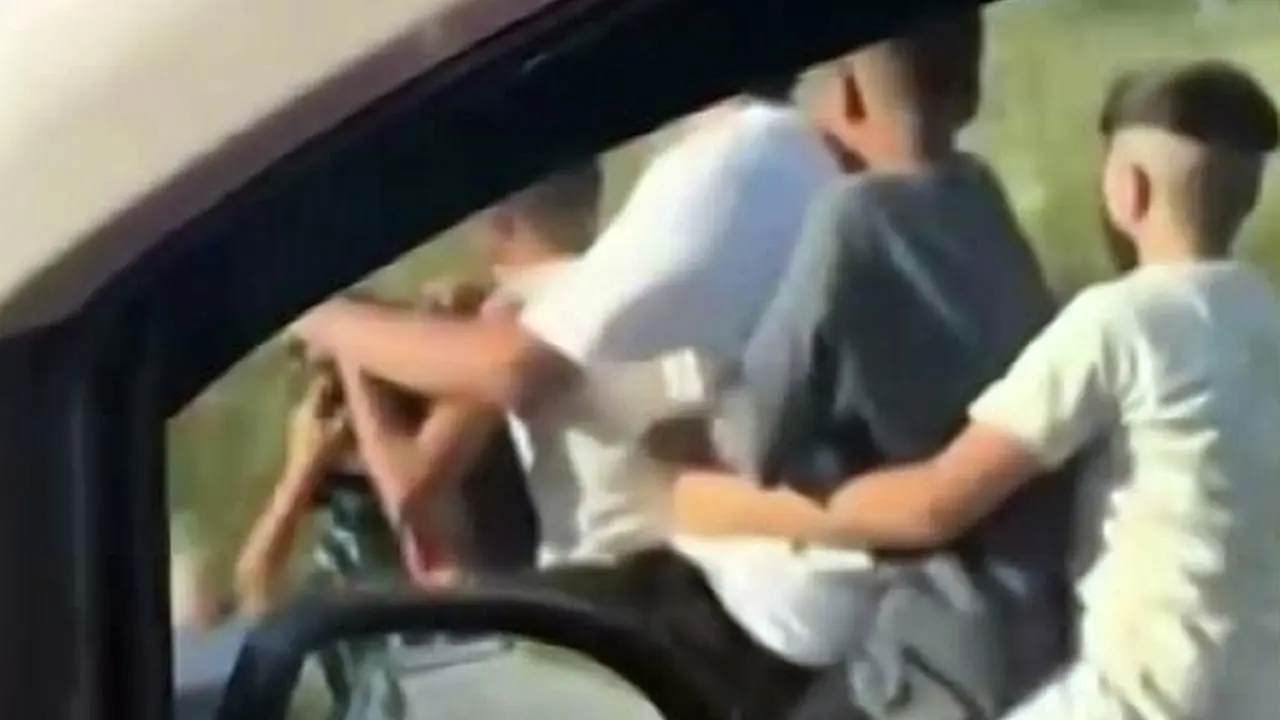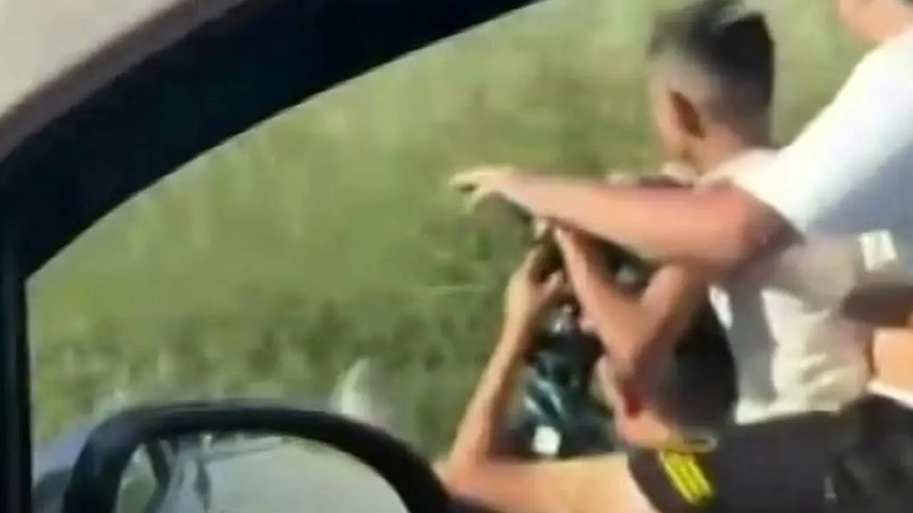 Bir kamyonetin kasasında eşyaların üzerinde seyahat eden iki çocuk, güvenlik önlemi olmadan yolculuk yaptı. Ani bir manevra, büyük bir riske neden olabilirdi.