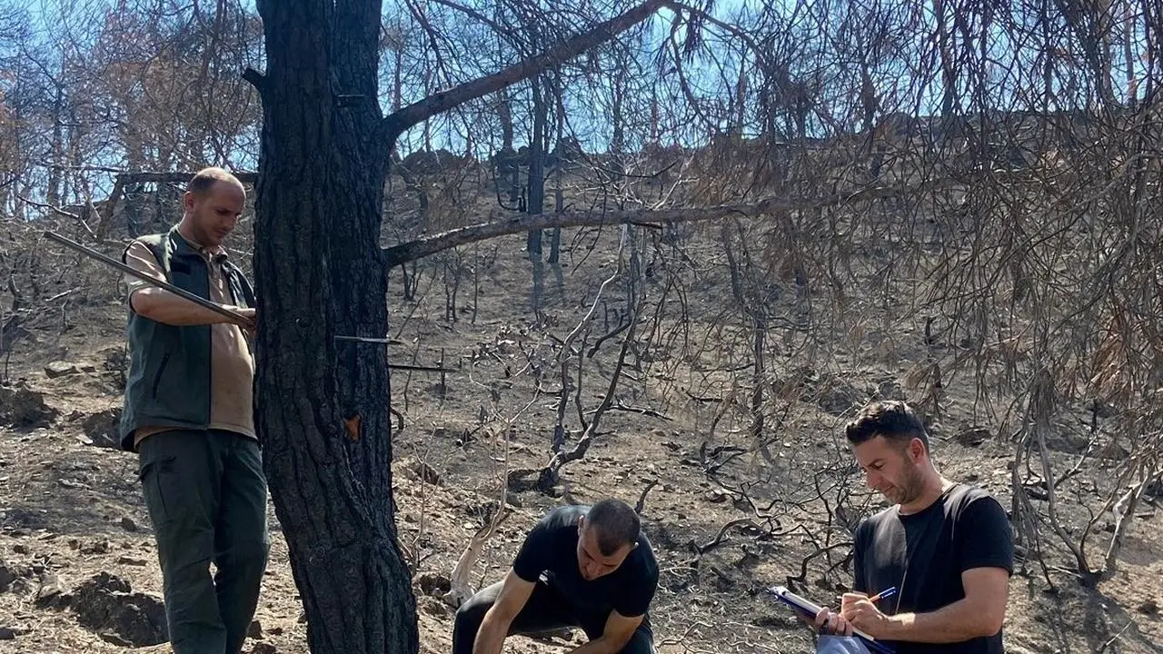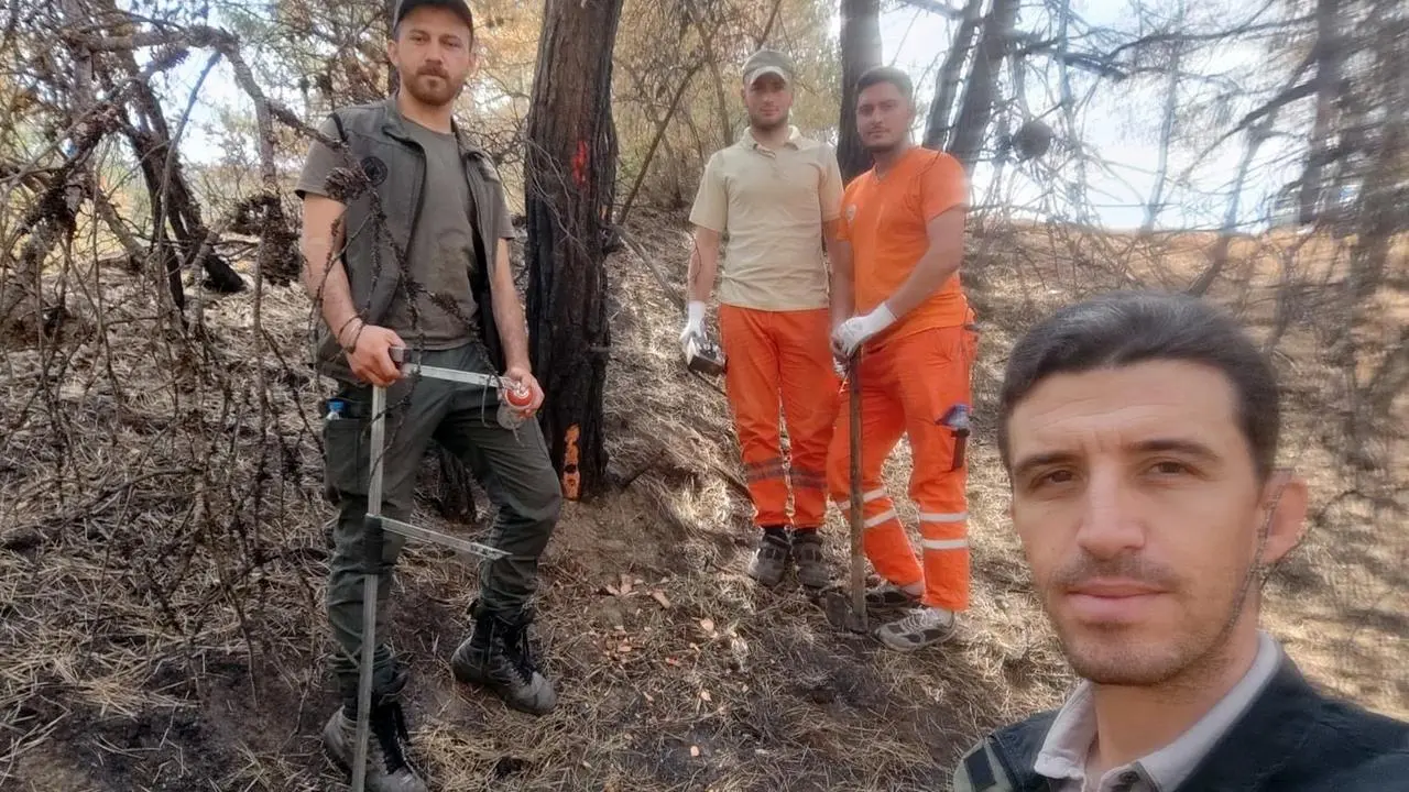 Dikili damga ekipleri, yanan alanların ormanlaşması için titizlikle çalışmalarını sürdürüyor.