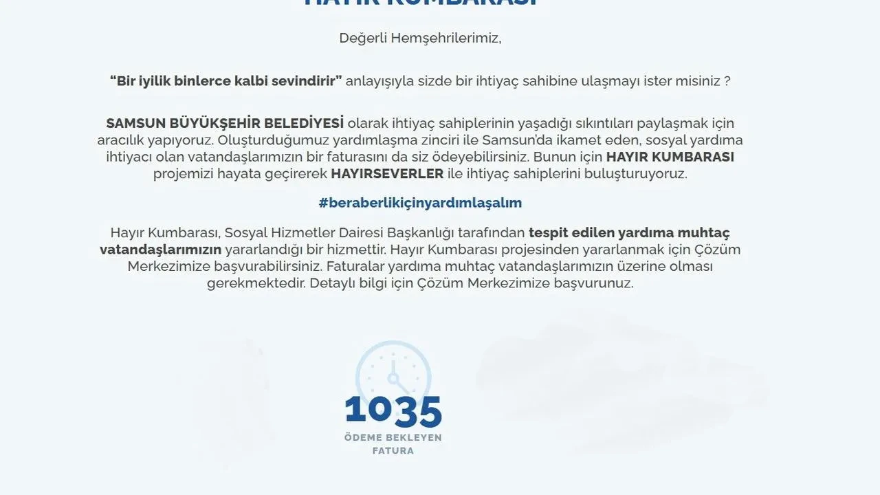 Samsun Büyükşehir Belediyesi, ihtiyaç sahipleriyle hayırseverleri buluşturan Hayır Kumbarası projesiyle dijital bağış sistemini hayata geçirdi.