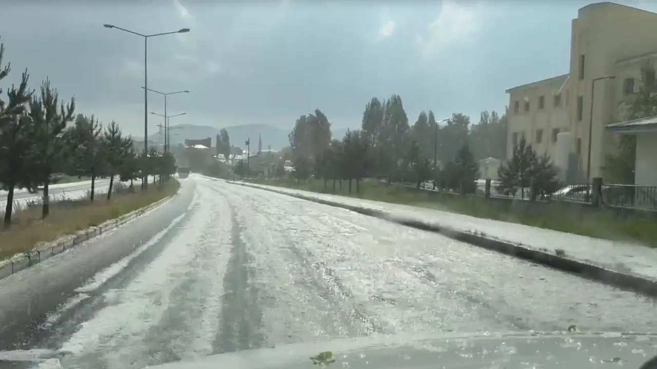 Dolu yağışı ilçeyi beyaz örtüyle kapladı. Haziran ayında yaşanan bu durum bölgede şaşkınlık yarattı.