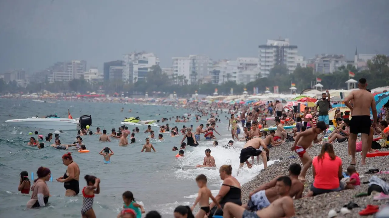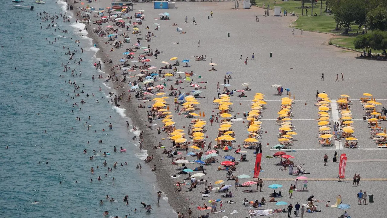 Antalya'da termometreler 33 dereceyi gösterirken, vatandaşlar ve turistler dünyaca ünlü Konyaaltı Sahili'ni doldurdu.