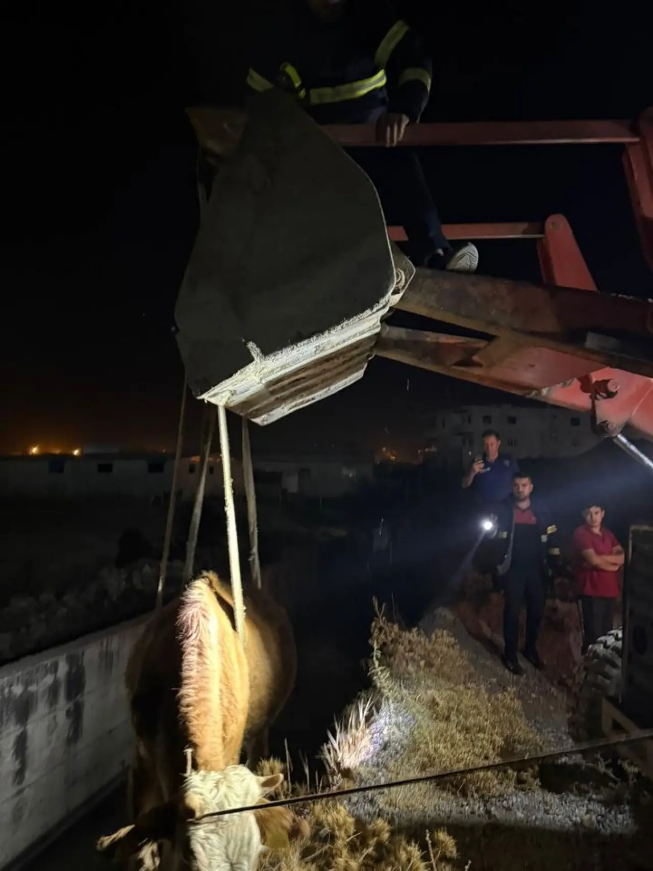 İnek, itfaiye ekiplerinin kontrollü müdahalesi sonucu kanaldan çıkarıldı. Kurtarma işlemi sonrasında hayvan sahibine teslim edildi.