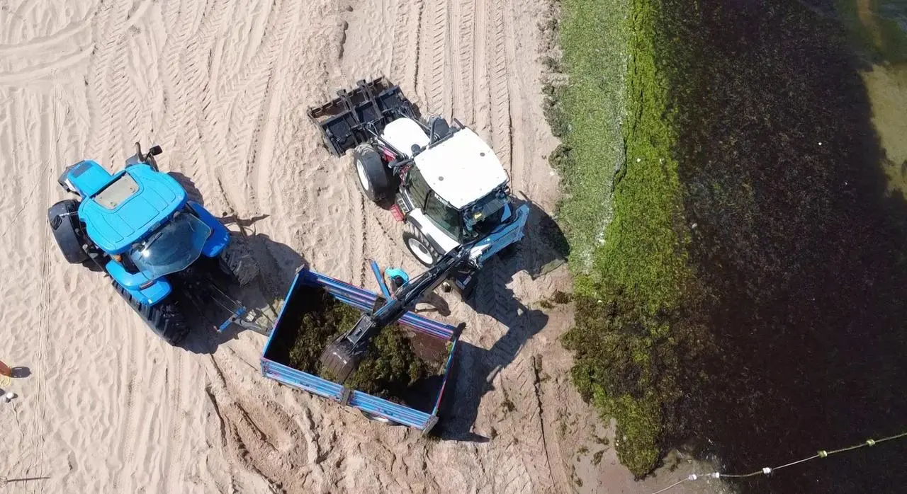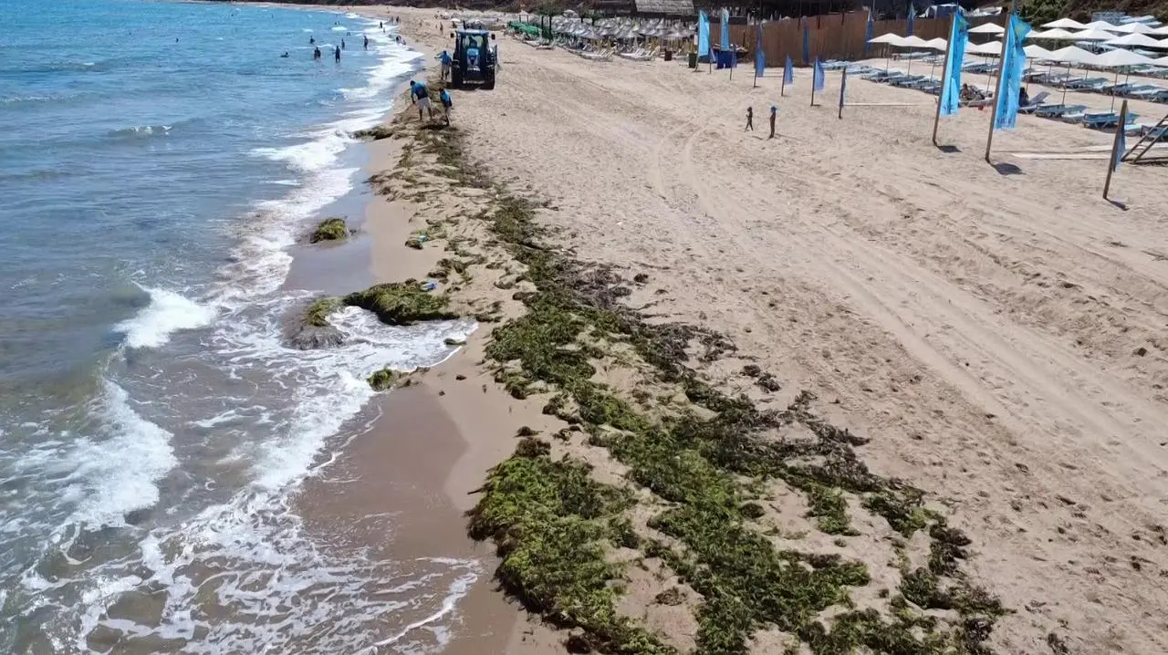 Rüzgarın şiddetiyle dalgalar, kayalardaki yosunları kıyıya sürükledi. Temizlenen sahilin yeniden halkın kullanımına açıldığı bildirildi.