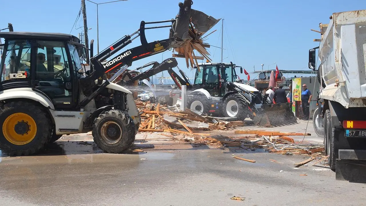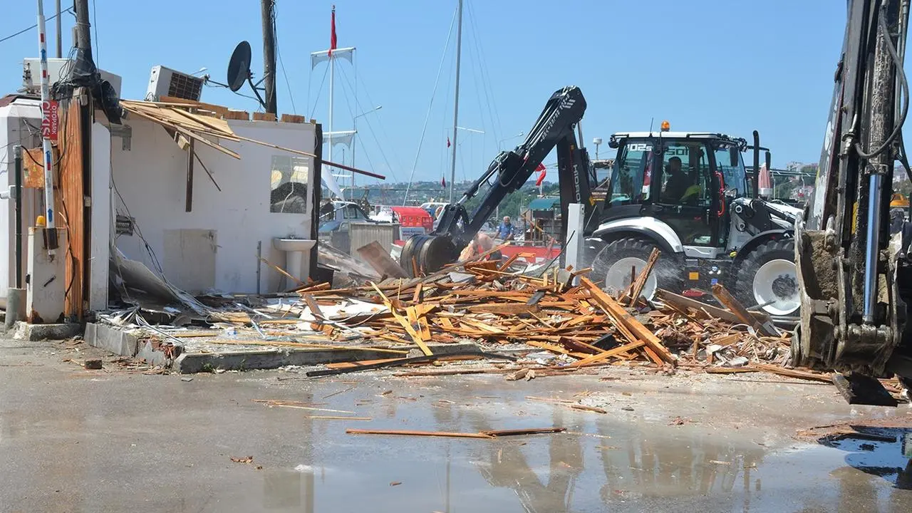 Belediye ekipleri yıkım çalışmalarına sabah saatlerinde başladı. Polis ekipleri de bölgede güvenlik tedbirleri aldı.