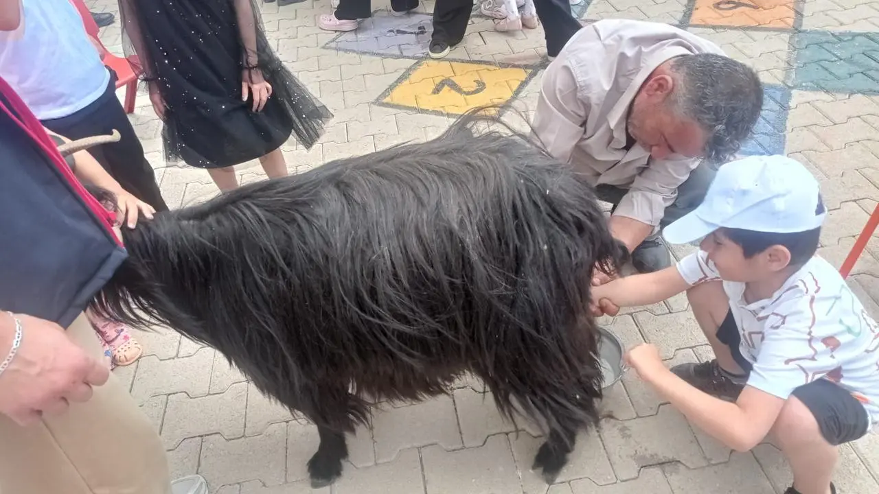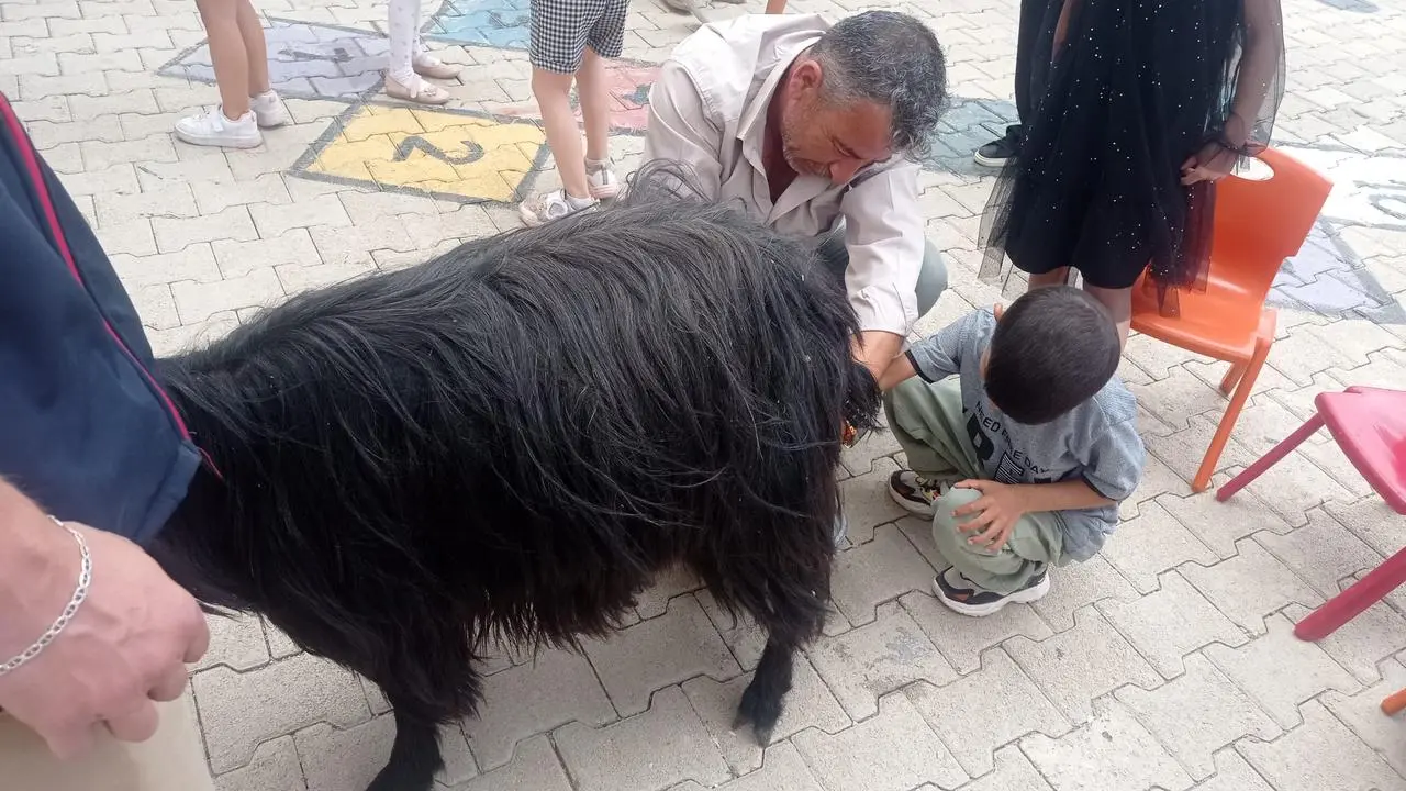 Çocuklar keçiyle yakından ilgilenerek keyifli anlar yaşadı. Etkinlik renkli görüntülere sahne oldu.