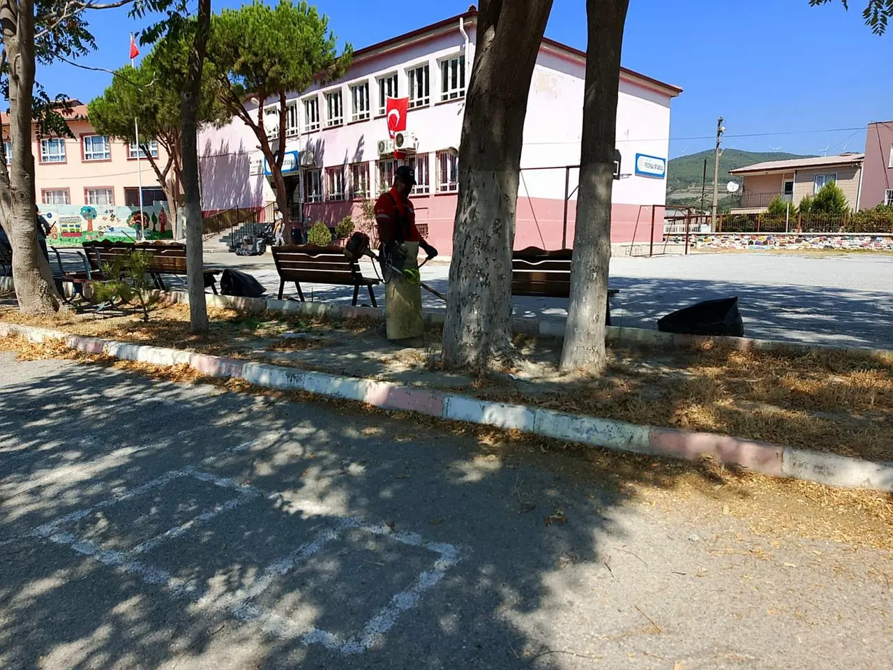 Park ve Bahçeler Müdürlüğü ekipleri, okulları yeni döneme hazırlıyor. Temizlik faaliyetleri ile düzenli bir görünüm sağlanıyor.