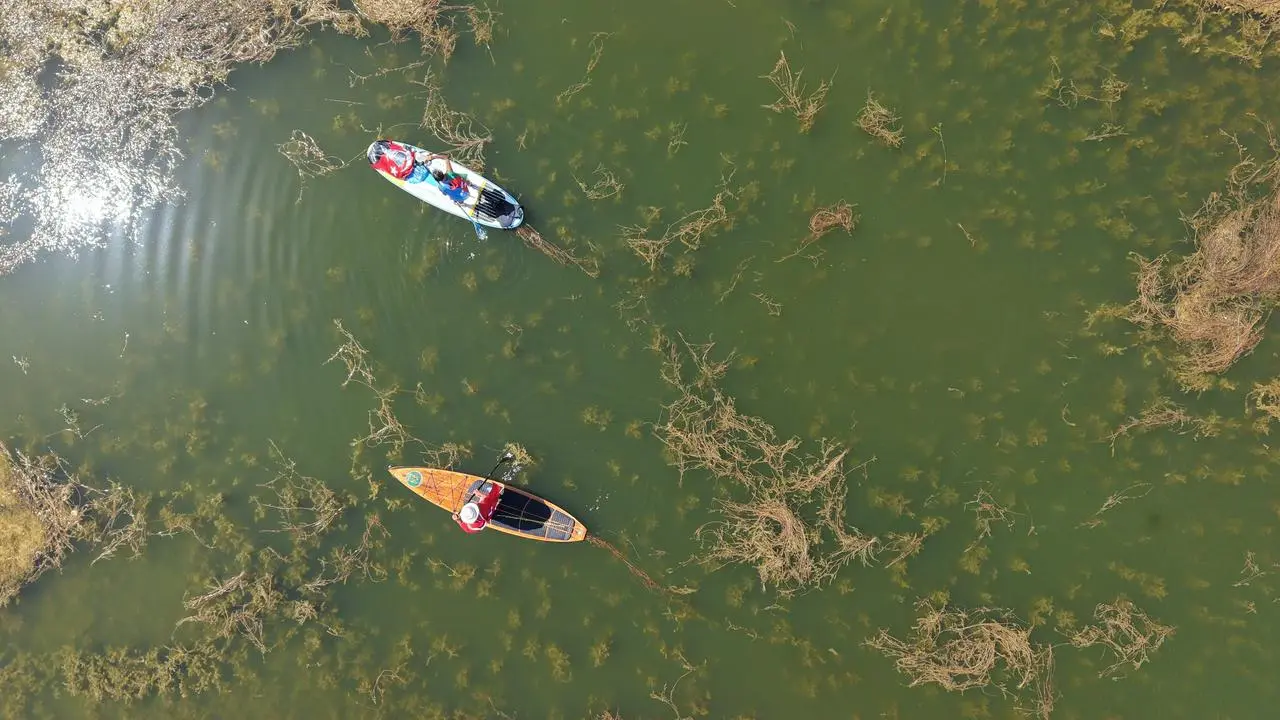 Beyşehir Gölü'ndeki kuraklığa dikkat çekmek için sporcular SUP ile kürek çekerek gölü geçti.