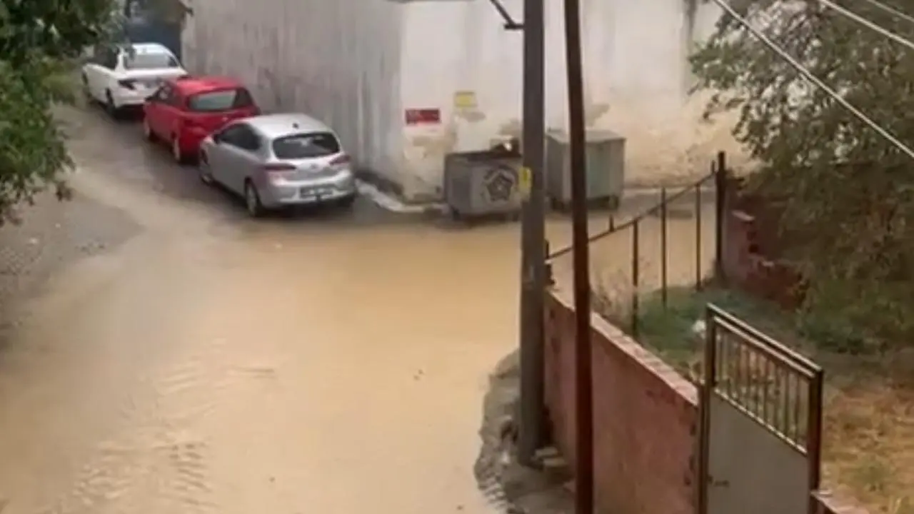 Kumbağ Mahallesi'nde akşam başlayan yağış, sokakları kısa sürede dereye çevirdi. Trafikte aksamalar yaşanırken, bazı araçlar yolda ilerlemekte zorlandı.