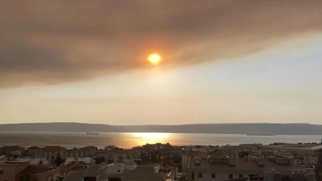 Yangının çıkardığı yoğun duman, Çanakkale Boğazı'nı tamamen kapladı. Görüş mesafesinin düşmesi bölgede ulaşımı etkiledi.